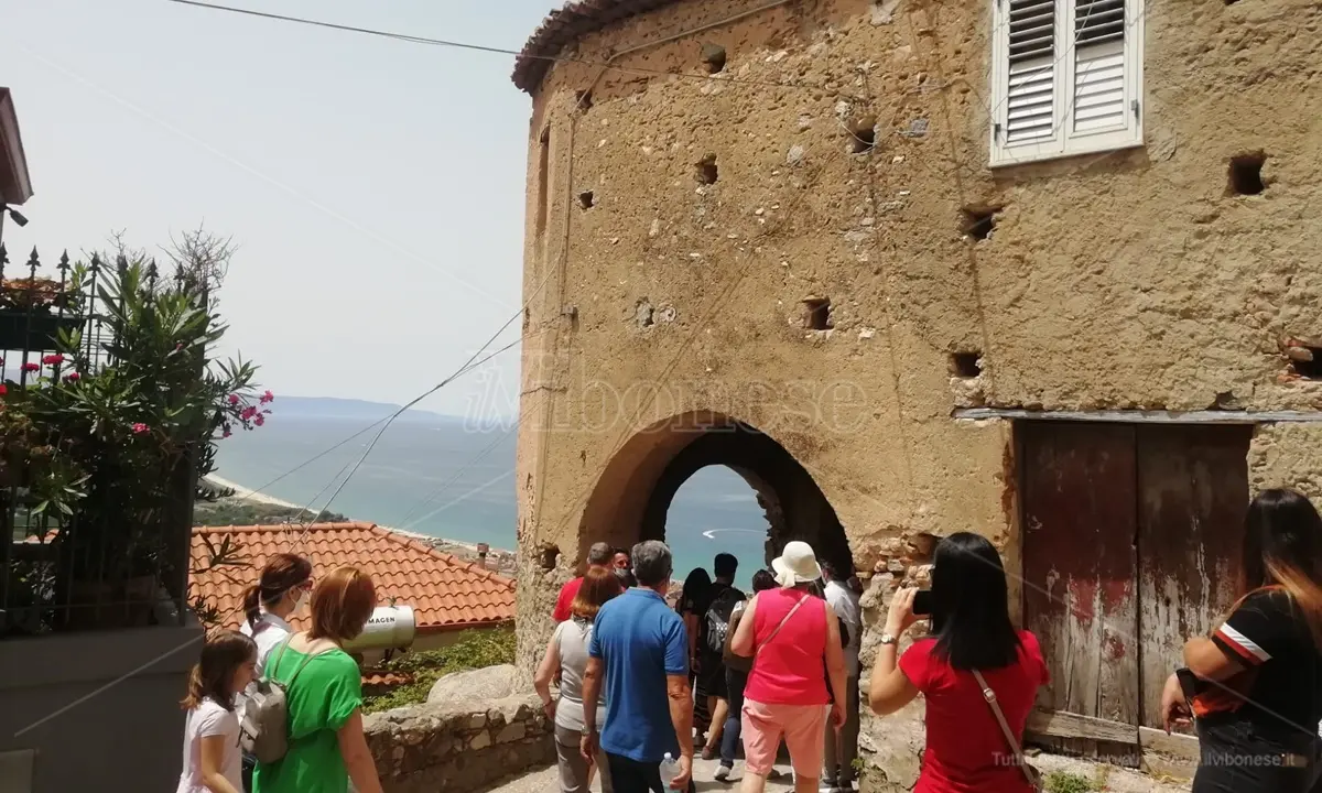 Decine i presenti, provenienti dal Vibonese e non solo. Macchine fotografiche e smartphone in mano, il tour è partito da piazza Garibaldi e ha toccato i punti principali del centro storico. Il Borgo, l’antico quartiere ebraico Giudecca e poi porta Palmentieri, l’unica ancora in piedi delle sette porte di accesso alla città di epoca normanna. Immancabile la visita alla Concattedrale con i suoi tesori: la Madonna scolpita da Antonello Gagini e il cinquecentesco crocifisso che porta ancora i fori dei colpi di archibugio sparati dai saraceni durante un’incursione nel 1638. Il pezzo forte è stato però l’ingresso nel castello settecentesco dei Ruffo di Calabria: sede in passato del museo archeologico e di quello della civiltà contadina, è, infatti, ormai chiuso da oltre un decennio. È stata dunque una vera e propria eccezione potervi accedere e affacciarsi dalla ampia balconata che dà sul mare.