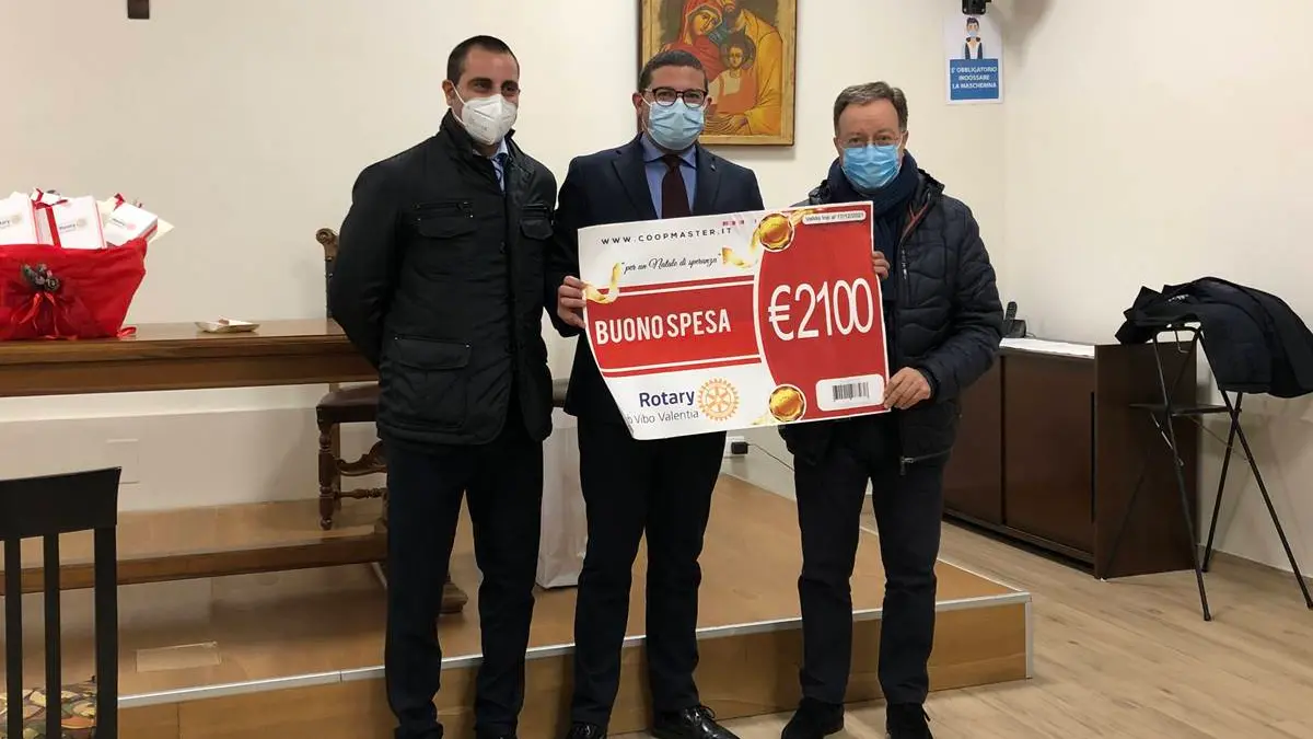 “Per un Natale di speranza”: 2.100 euro in buoni spesa donati ai più bisognosi dal Rotary Club Vibo Valentia, presieduto da Giulio Capria, in collaborazione con Coop Master 3.0-Gruppo Az Spa. «Un importante progetto di solidarietà – si legge in un comunicato stampa – che permetterà di mettere a disposizione delle numerose famiglie in stato di necessità un totale di 84 buoni spesa Coop da utilizzare per i propri acquisti. Nel corso di una semplice cerimonia svoltasi mercoledì 23 dicembre, al termine della santa messa celebrata nella chiesa di Santa Maria La Nova, Giulio Capria, presidente dello storico Rotary club vibonese, alla presenza del direttore della Coop Vibo Valentia Andrea Barilaro e dei soci del club, ha consegnato al parroco monsignor Vincenzo Varone la propria donazione di 2.000 euro ai quali si aggiunge un ulteriore 5 per cento donato dalla Coop Master per un totale di 2.100 euro in buoni spesa da 25,00».