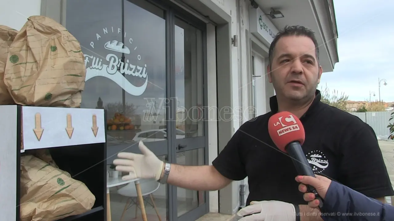 Ogni pomeriggio all’ora di chiusura prepara dei sacchetti con l’invenduto della giornata e li sistema in un espositore fuori. «Dalle ore 16 e per tutta la serata o anche di notte, chi ha bisogno può passare e prendere in assoluto anonimato», dice. Non solo pane, ma anche pizzette e cornetti che Bruno spera possano regalare un sorriso a un bambino o a un padre di famiglia. «Ce ne sono famiglie che hanno bisogno, ce ne sono tante», riferisce Brizzi che in passato aveva dato vita a un’analoga iniziativa nel suo vecchio panificio di Cessaniti.
