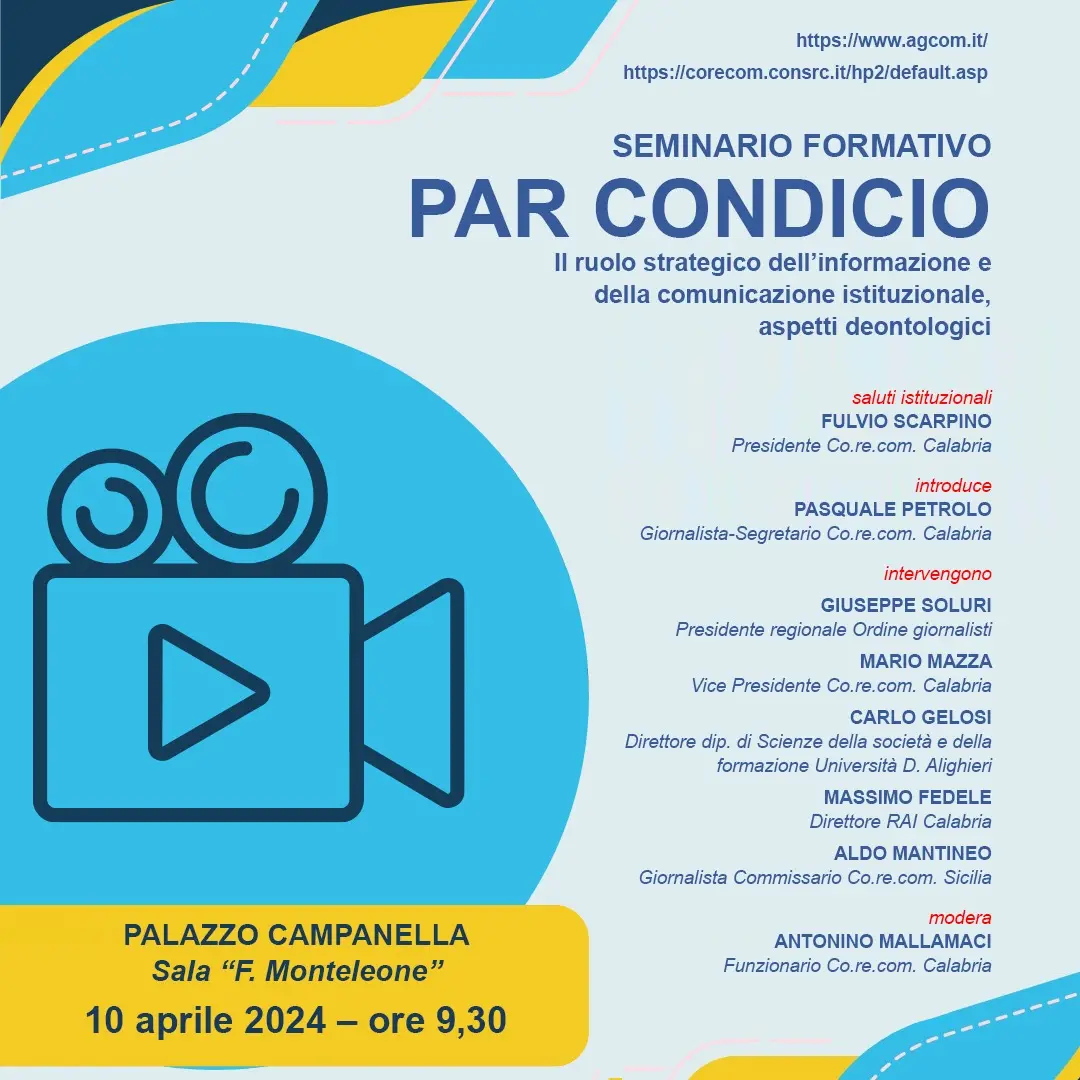 “Par Condicio: il ruolo strategico dell’informazione e della comunicazione istituzionale, aspetti deontologici”, è stato il titolo del seminario, promosso dal Comitato regionale per le comunicazioni della Calabria (Corecom) e svoltosi a Reggio Calabria, nella sala Monteleone del Consiglio regionale. L’iniziativa, servita anche come momento formativo per i giornalisti calabresi, ha rappresentato un’occasione per analizzare e comprendere le regole della “par condicio” (pari condizioni), nell’ambito dell’informazione e della comunicazione istituzionale. Ideato dal presidente del Corecom Calabria, Fulvio Scarpino e dal giornalista Pasquale Petrolo, segretario regionale del Corecom, il seminario si è posto l’obiettivo di analizzare in profondità il concetto della par condicio, ritenuta, dagli organizzatori, “colonna vertebrale della democrazia stessa”. “Tale principio, legittimato dal rispetto dell’equità e dell’imparzialità – hanno aggiunto i rappresentanti del Corecom Calabria – si erge a garante della giustizia informativa, assicurando che ogni soggetto coinvolto in un evento di rilevanza pubblica riceva trattamento eguale da parte dei media. E se opportunamente applicato, quale fulcro ineludibile, avvia la danza della trasparenza, dell’equità e della responsabilità sociale, cardini imprescindibili per il corretto funzionamento di una società democratica”. Durante il seminario, al quale hanno preso parte anche molti studenti delle scuole superiori reggine, relatori ed analisti inseriti a pieno del sistema dell’informazione hanno offerto un’analisi approfondita della par condicio e delle sue implicazioni pratiche. Il presidente regionale dell’Ordine dei giornalisti, Giuseppe Soluri, ha condiviso la sua vasta esperienza nel campo del giornalismo, offrendo preziose riflessioni sul ruolo fondamentale della par condicio nell’assicurare un’informazione libera e imparziale.