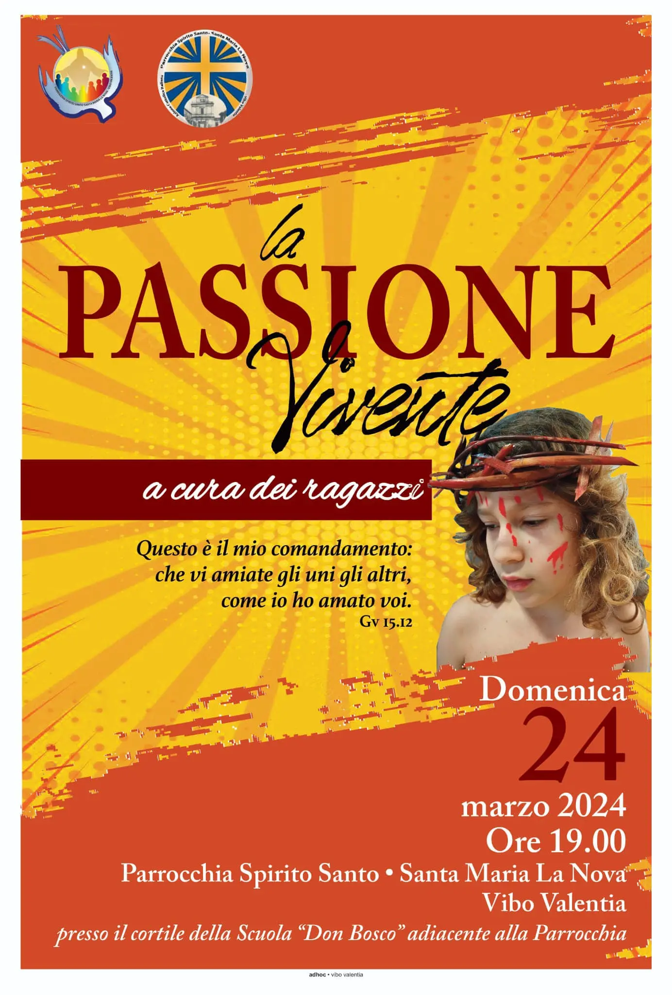 A Vibo Valentia si lavora per la realizzazione della “Passione vivente a cura dei ragazzi”. Per il 24 marzo, infatti, la parrocchia Santa Maria la Nova organizza e promuove la sacra rappresentazione. L’appuntamento, sotto la guida dei parroci don Michele Vinci e don Giuseppe Gagliano, avrà inizio alle ore 19.00. In questi giorni, il gruppo – sostenuto dai volontari della parrocchia – si sta impegnando per la perfetta riuscita dell’evento. La passione vivente coinvolge 30 bambini dagli 8 ai 10 anni. Il punto di ritrovo sarà il cortile della Scuola don Bosco, adiacente la chiesa. Durerà circa un paio di ore e saranno portati in scena i momenti salienti della Passione, morte e resurrezione di Gesù. «I bambini – spiegano i promotori – sono emozionati e sperano della presenza e vicinanza della propria città – sottolineano i promotori aggiungendo – l’obbiettivo è raccontare e rendere partecipi i fedeli. Si tratta di un momento di fede non di teatro». Tramite la sacra rappresentazione, i giovani intendono veicolare il messaggio universale di pace e di amore verso gli altri. Gesù verrà interpretato da Kevin Luigi Mamone, la Madonna da Gerardina Terranova. Nelle vesti di Pilato, Francesco Mamone, in quelle di Caifa, Filippo Piccione. A fare da cornice, numerose altre figure.