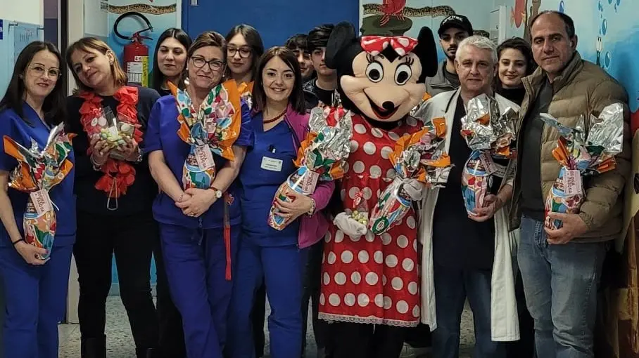I piccoli pazienti hanno ricevuto la visita della Pro Loco di San Costantino Calabro, accompagnata dalla mascotte Minnie. A ognuno di loro è stato donato un uovo di Pasqua