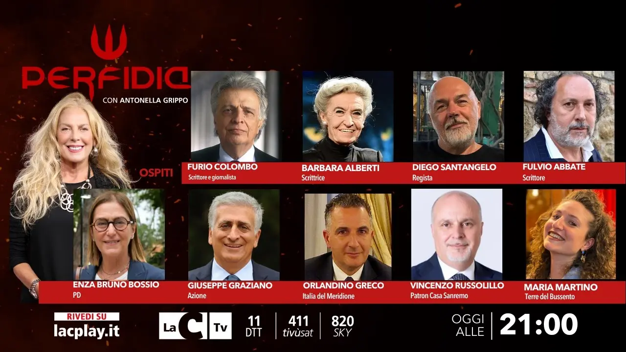 L’appuntamento con Perfidia è tutti i venerdì alle ore 21 su LaC Tv, che è visibile sul canale 11 del digitale terrestre, canale 411 di TivùSat e sul canale 820 di Sky. È possibile vedere e rivedere la trasmissione anche in streaming su LaC Play, scaricando l’app per Android e iOs o raggiungendo il sito www.lacplay.it.