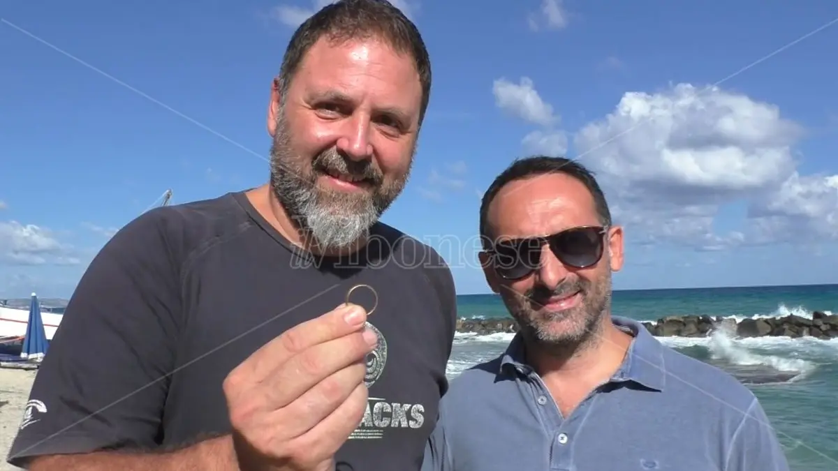 Carlo Romano è il papà della piccola Anna Sofia. La bimba che sabato scorso mentre cercava conchiglie ha trovato sul fondale di Pizzo, una fede nuziale. E così la decisione di mettersi alla ricerca del legittimo proprietario attraverso un appello social lanciato da Silvio Primerano. Sull’anello è inciso il nome di una donna e la data con l’anno del matrimonio. Particolari che non sono statai svelati per evitare che la fede vada a finire nelle mani sbagliate. «L’unico indizio che possiamo fornire è la data del 10 agosto – spiega Silvio – il resto sarà il legittimo proprietario a svelarlo. La fede in oro giallo è stata rinvenuta in località Malfarà, tra la chiesetta di Piedigrotta e la spiaggia dell’ex hotel Grillo a Pizzo. «Il prossimo 10 Agosto ricorre l’anniversario del matrimonio, sarebbe bello rintracciare il proprietario per tempo», dice speranzoso Carlo.