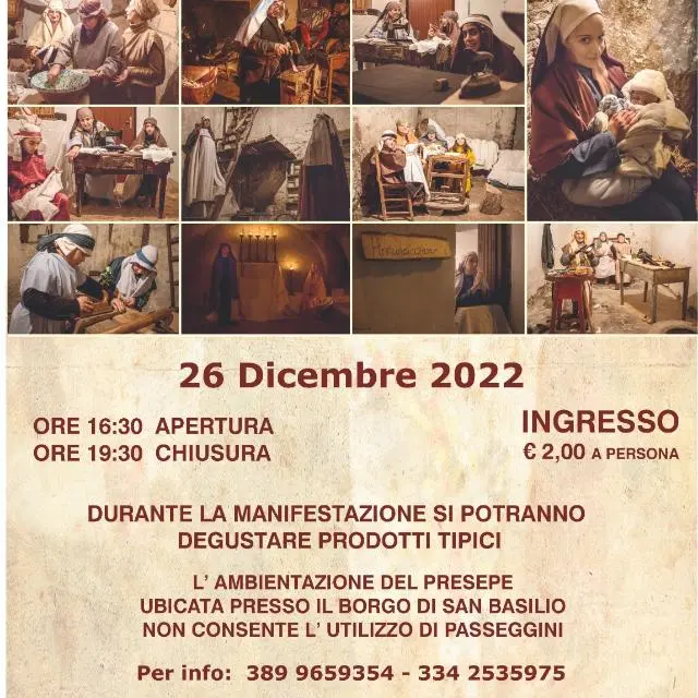 Soddisfatto il sindaco Vincenzo Caruso per l’impegno della comunità: “Si sta realizzando un gran bell’evento che coinvolge tante persone e crea un’atmosfera di unione e serenità, tipica del Natale. Ringrazio pubblicamente tutti coloro i quali fanno squadra per il bene della comunità e invito i forestieri a visitare il nostro paese che, per l’occasione, sarà ancora più caratteristico”. Alla manifestazione che si svolgerà in un’unica data, parteciperanno adulti e bambini per una rappresentazione che si annuncia molto suggestiva.