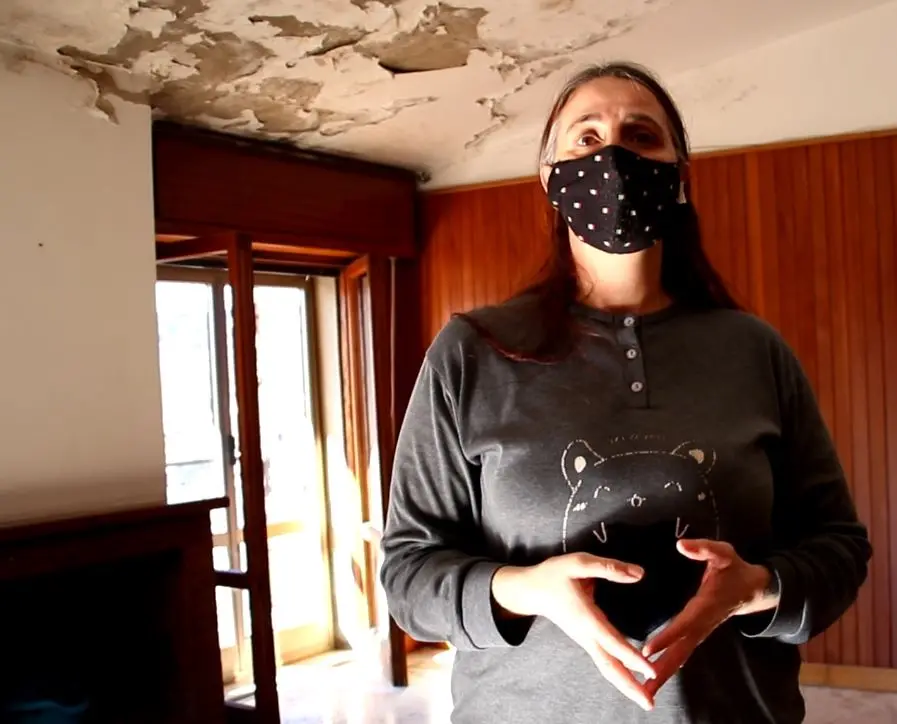 Nella casa degli Andreacchi, per alcune situazioni ci sarebbe da ridere se non ci fosse davvero da piangere. «Teniamo un secchio nel caminetto – spiega Salvatore – e quando piove dobbiamo svuotarlo di continuo per evitare che la casa si allaghi». Anche accanto al termocamino c’è un secchio. Il termocamino è acceso e dal tetto piove, a volte anche quando c’è il sole. Salvatore e Maria Rosa sono esasperati. Vivono in questo appartamento da sei anni. È un condominio e l’Aterp, a suo tempo, acquistò l’interno al quinto piano. Quindi lo assegnò in affitto agli Andreacchi, che avevano bisogno di una casa. Chi deve riparare quel tetto?