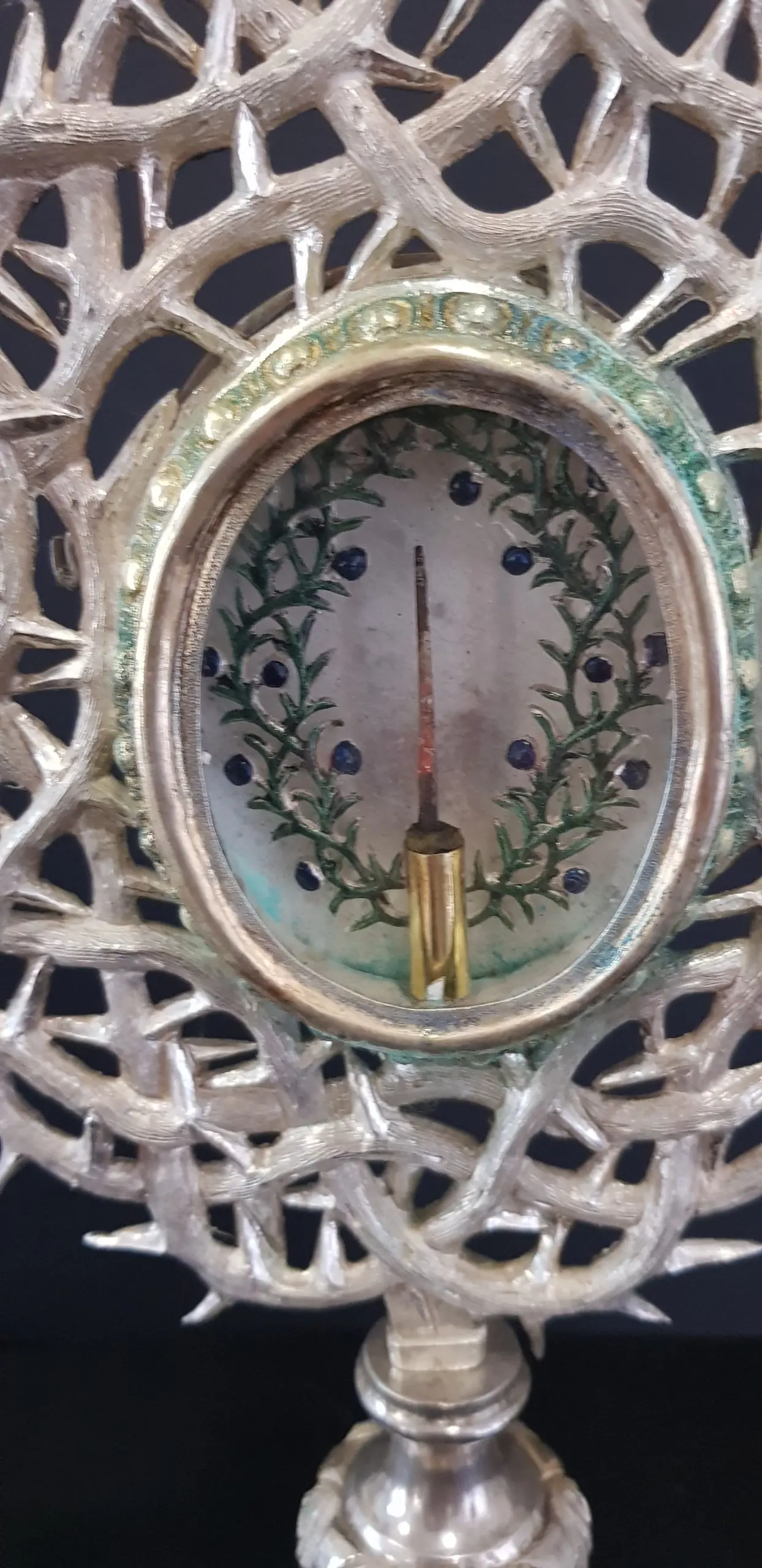 La sacra spina risulta incastonata all’interno di un prezioso ostensorio di scuola napoletana in argento fuso, sbalzato e cesellato della seconda metà dell’ottocento, commissionato dal vescovo dell’epoca Filippo Mincione e con su impresso il suo stemma. Esso presenta una base piramidale bombata, poggiante su quattro peducci a volute su pianta quadrangolare, ornata da volute e bipartita da ornamenti fogliacei e serti floreali. Il fusto è a balaustro con doppio nodo a vaso. La teca, in forma ovale, è contornata da perline e da una raggiera a forma di corone di spine. Alla sommità è applicata una coppia di testine alate, in mezzo alle quali vi è una crocetta apicale.