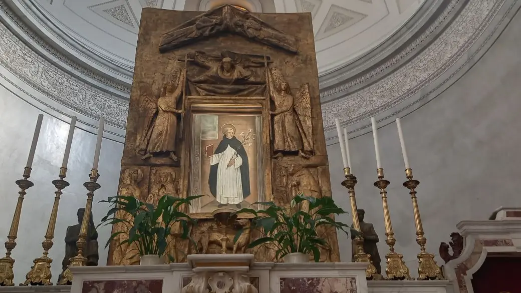 La Calata, proprio così è detta popolarmente l’apparizione dell’Immagine di San Domenico che si venera nel Santuario di Soriano Calabro. La storia: Erano ormai passati 20 anni da quando la piccola comunità dei Frati domenicani si era stabilita a Soriano. Tutto procedeva bene. I Frati vivevano nella semplicità e nella piena osservanza regolare con grande beneficio spirituale personale e dei fedeli. Al momento dell’evento che stiamo per raccontare, la comunità dei Frati era composta da Padre Domenico Galiano, Padre Stefano Natale, Padre Tommaso, Fra Lorenzo da Grotteria e Fra Natale Sorbilli. Ogni notte questa piccola comunità fedelissima si ritrovava in chiesa per la recita dell’Ufficio Divino, ora detto Liturgia delle Ore. Nulla di veramente straordinario fino al 15 settembre del 1530, quando, intorno alle 2:30 di quella notte avvenne un fatto che sconvolse la vita semplice e ordinaria di quei buoni Frati. Fra Lorenzo, entrando in chiesa, vide tre donne di aspetto maestoso e, colto dallo stupore anche dell’orario, si domandò subito cosa vi facessero e se fosse rimasta aperta qualche porta del Convento, in realtà chiusa. Una delle tre donne lo avvicinò e gli chiese: “Avete in questa chiesa qualche immagine di San Domenico?”. Fra Lorenzo, più confuso che mai, le rispose che non ve ne era alcuna al di fuori di quella dipinta e alquanto sbiadita su una parete. A quel punto la donna gli consegnò una tela e gli disse: “Prendete questa e portatela al Superiore e ditegli che l’esponga sull’altare”. Gli consegna quindi un involucro di tela e Fra Lorenzo corre dal Superiore. Le tre donne disparvero. Spiegando la tela, il Superiore e i Frati rimasero stupiti nel vedere l’immagine di San Domenico e si recarono in chiesa per parlare alle tre donne che nel frattempo erano scomparse. Il Superiore, tuttavia, troppo prudente, non espose la tela sull’altare come aveva richiesto la donna che l’aveva donata. La notte seguente, una delle tre donne che si presume fosse Santa Caterina Vergine e Martire di Alessandria d’Egitto, apparve a uno dei Frati e quasi rimproverandolo per aver esitato a esporre la tela in chiesa, gli disse che le tre donne erano: la Vergine Santissima, Santa Maria Maddalena e lei stessa, protettrici dell’Ordine domenicano. Dal superiore scomparve ogni dubbio ed espose l’Immagine sull’altare per la devozione dei fedeli. Documenti storici che attestino quanto avvenuto nella notte del 15 settembre del 1530 non ve ne sono. Tuttavia, nel 1610 quattro parroci: don Baldassare Greco, don Agostino Gamarò, don Ottavio Imeneo e don Fabio Lanza, riferirono con giuramento di aver più volte sentito raccontare il fatto dell’apparizione miracolosa del Quadro di San Domenico da padre Domenico Galiano. Essi deposero questa testimonianza nel processo canonico ordinato dal Superiore generale nel 1609. C’è di più. Don Natale Sorbilli che al tempo dell’avvenimento viveva con i Frati in Convento, testimoniò con precisione certosina ogni particolare. La testimonianza fu fatta davanti al notaio Andrea Raffaele e alla presenza del giudice Francesco Greco. Al di là della veridicità storica dell’avvenimento di quel lontano 15 settembre del 1530, va sottolineata la grande devozione e venerazione all’Immagine Sacra, che ebbe da quel momento e, alla quale, innumeroveli tra religiosi, sorianesi e pellegrini da ogni parte del mondo, associano prodigi e miracoli.