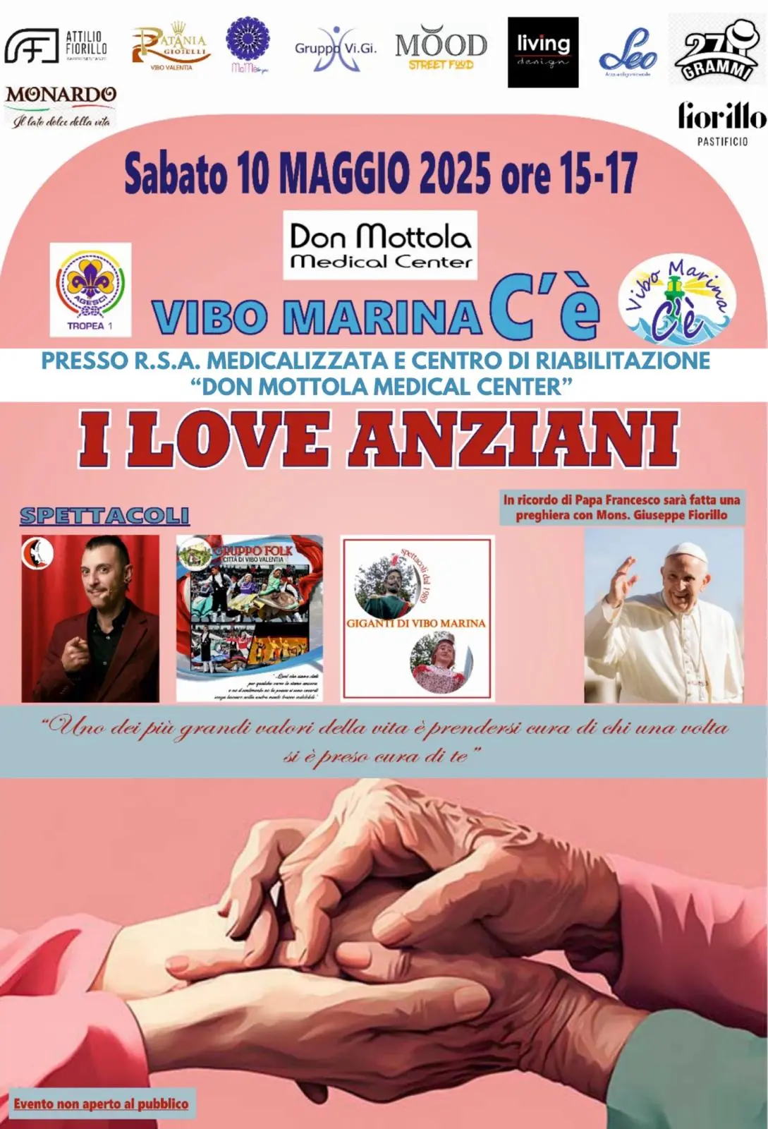 Sabato 10 maggio a Drapia, nella struttura del “Don Mottola Medical Center” si terrà il XVI evento “I love anziani”, organizzato dall’associazione Vibo Marina C’è. Il sodalizio «ha iniziato la sua attività il 16 aprile 2022 con un primo evento in un momento difficile come quello del Covid-19 – si legge nel comunicato stampa dell’associazione -, al fine di offrire ai bambini del proprio paese momenti di spensieratezza e allegria. Il presidente e gli attivisti, dopo tre anni di attività e quindici eventi realizzati, sono felici di continuare ad organizzare iniziative mirate a sostenere valori importanti come quelli dell’ambiente, dell’aggregazione e dell’amore per il prossimo, dedicandosi in particolare ai bambini, agli anziani e alle persone in difficoltà del proprio territorio». L’obiettivo di quest’anno, spiega il presidente dell’associazione Attilio Fiorillo, è «donare affetto e momenti di condivisione tra anziani e bambini. Si tratta di un evento senza scopo di lucro, diverso dagli altri poiché non è aperto al pubblico. Infatti, saranno presenti solo i bambini scout di Tropea. La giornata inizierà con una preghiera di monsignor Giuseppe Fiorillo».