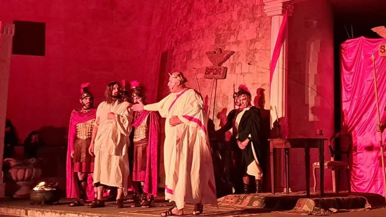 Una serata intensa e coinvolgente che ha unito fede, arte e comunità: è questo il bilancio della Passione Vivente “Il Musical”, andata in scena con grande successo nella serata dell’11 aprile. L’evento, realizzato dalla parrocchia Gesù Salvatore a Vena di Jonadi con l’ausilio della scuola d’arte “Armus Lab” e l’associazione “Seme di Speranza”, ha visto la partecipazione attiva di ben 80 figuranti, tra adulti e ragazzi, che hanno dato vita a una rappresentazione toccante e sentita degli ultimi momenti della vita di Gesù. Sotto la direzione artistica di Antonella Furfaro che con grande competenza e sensibilità ha ricoperto il ruolo di regista, ogni scena è stata curata nei minimi dettagli, offrendo al pubblico uno spettacolo suggestivo e coinvolgente. I protagonisti hanno saputo interpretare i propri ruoli con professionalità, passione e impegno, trasformando ogni passaggio in un’occasione di riflessione profonda.