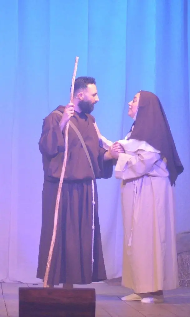 Fare apostolato e conoscere la vita di due grandi santi attraverso la musica e il teatro. Questi gli obiettivi prefissati e perfettamente centrati nell’auditorium parrocchiale Gesù Salvatore di Vena di Jonadi, grazie al musical Chiara e Francesco. Il mix di arte e spiritualità è stato messo in scena dalla scuola d’arte ArMusLab, diretta dalla maestra Antonella Furfaro, in collaborazione con il parroco di Paradisoni e Pannaconi don Filippo Emanuele Grillo e il supporto del gruppo giovani della parrocchia di Vena, guidata da don Roberto Carnovale, e di alcuni coetanei di San Calogero. Alla fine, grande la soddisfazione del numeroso pubblico presente, tributata ai 17 attori in scena e a tutti i vari protagonisti della serata con degli scroscianti applausi. «Il musical – spiega oggi con soddisfazione don Carnovale – è stato non solo una rappresentazione artistica, ma anche una grande occasione di crescita per l’intera comunità e di collaborazione tra i ragazzi di San Calogero e il gruppo giovani di Vena di Jonadi, i quali con passione e dedizione hanno portato in scena la storia di San Francesco d’Assisi e Santa Chiara, due figure che ancora oggi continuano a ispirare per il loro coraggio e la loro determinazione nel seguire la voce interiore di Dio.