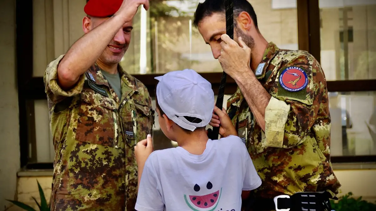 Una giornata diversa, particolare, fatta di tanti sorrisi, quella trascorsa dai Cacciatori di Calabria. A portare una ventata di allegria questa mattina alla base militare “Luigi Razza” sono stati i bambini e i volontari dell’associazione “Io autentico” di Vibo, che si occupa di realizzare programmi di inclusione sociale per migliore la qualità di vita delle persone con autismo. Il piccolo plotone è stato accolto con entusiasmo dallo Squadrone eliportato, per un «progetto unico in Italia perché ha coinvolto sia bambini con autismo che bambini normotipici – spiega Francesca Iorfida, vicepresidente dell’associazione – L’obiettivo è stato quello di proporre delle esperienze che esulano dalla tipica terapia di studio, portando i bambini in esperienze naturali, di contatto con la natura, all’aria aperta, al fine di promuovere quelle che sono le attività sociali, importanti anche per i normotopici». [Continua in basso]