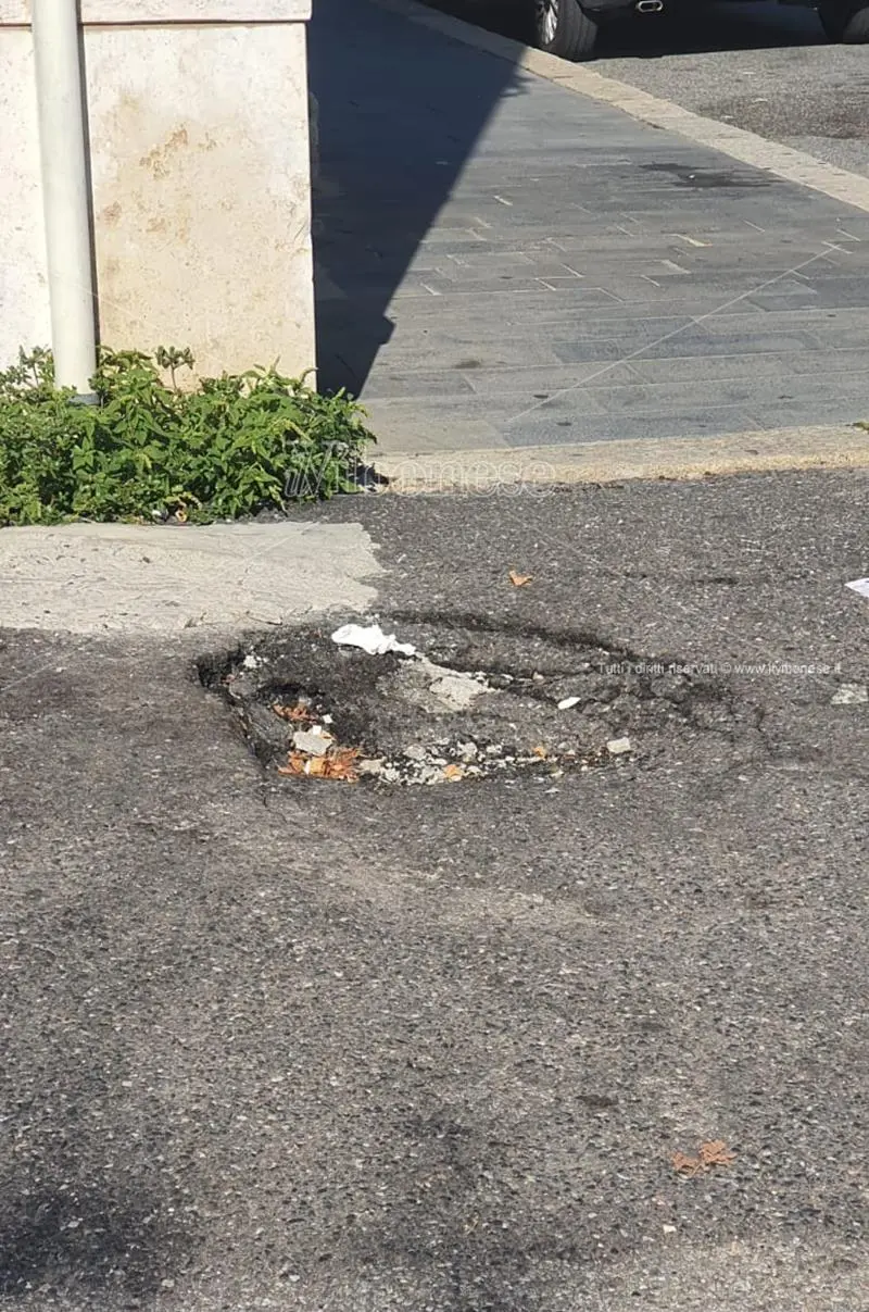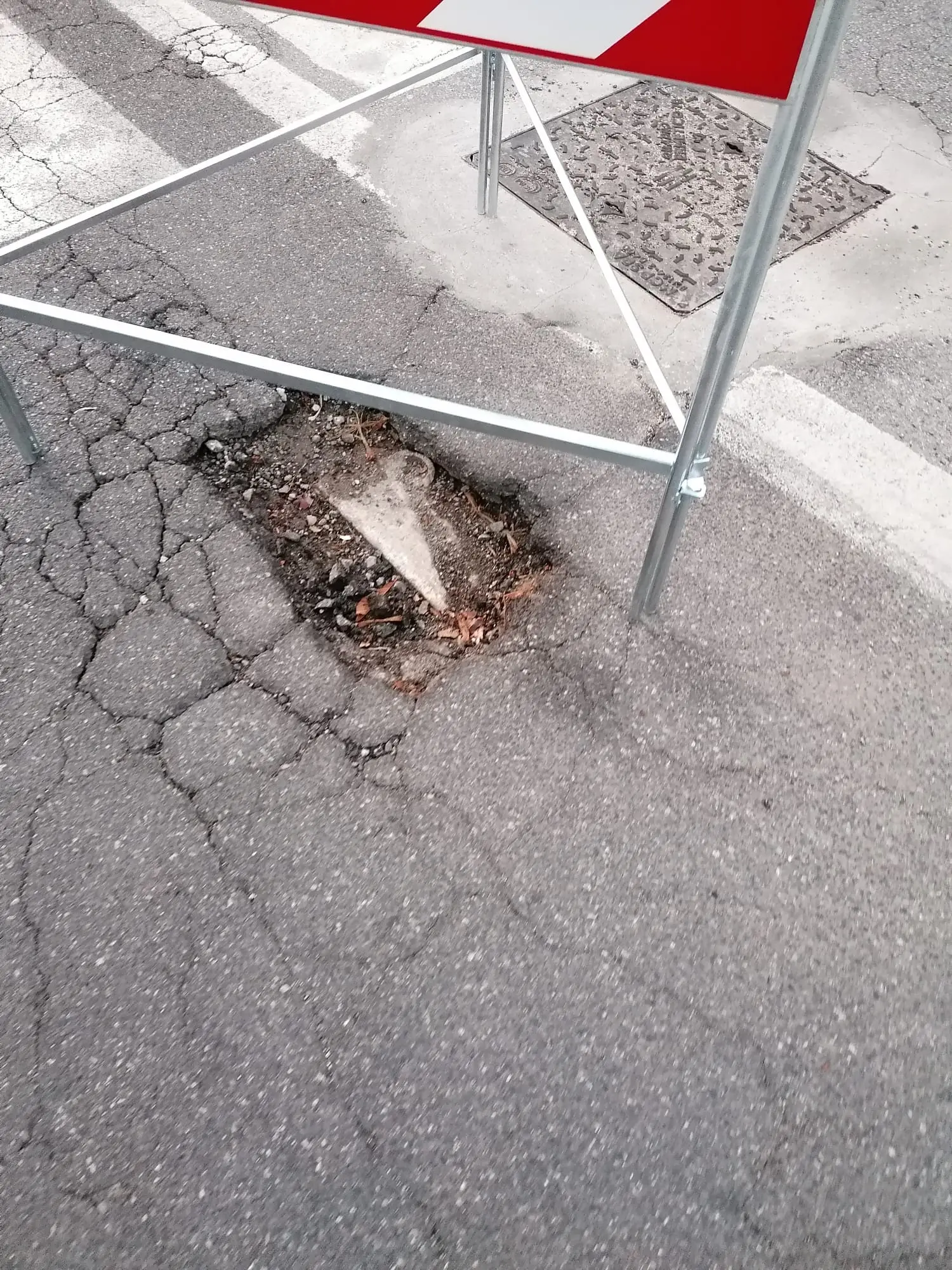 Come si può vedere dal reportage fotografico, infatti, a volte ci si imbatte in veri e propri crateri che potrebbero creare ingenti danni ai veicoli in transito, provocando un effetto domino: i proprietari dei mezzi incidentati si rivolgono al Comune per i danni e, quest’ultimo, in caso di soccombenza, è costretto a risarcire gli utenti con soldi pubblici, vale a dire di tutti i cittadini e che potrebbero essere spesi ben diversamente.