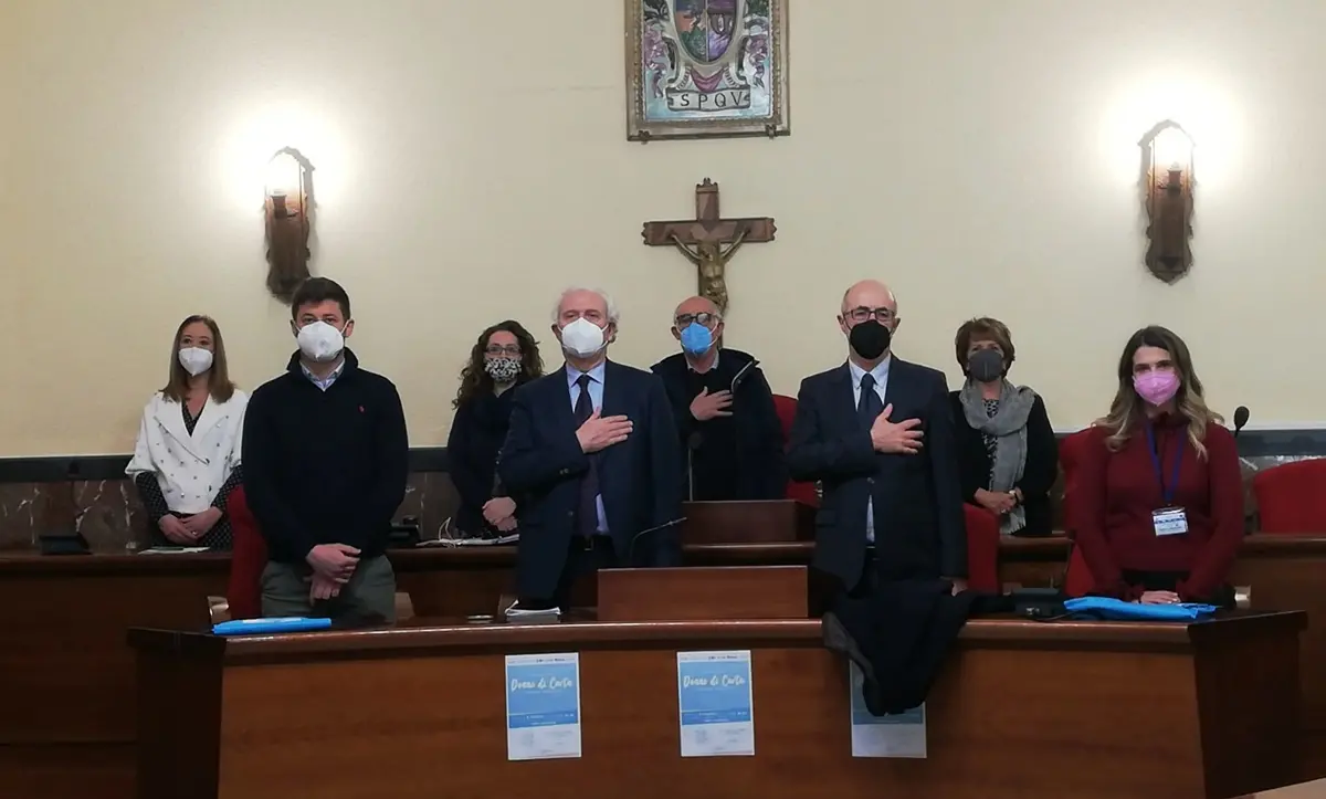 La cerimonia ha avuto inizio con i saluti di Iorfida, a seguire l’inno europeo e l’inno d’Italia, con l’osservazione poi di un minuto di raccoglimento per i caduti e la pace in Ucraina. [Continua in basso]