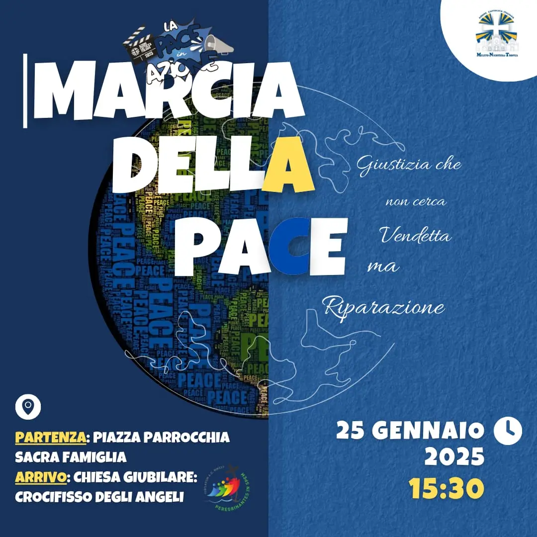 - Ore 16.15 inizio Marcia della Pace per le vie di Vibo: partendo dalla chiesa “Sacra Famiglia” si arriverà alla chiesa “Crocifisso degli Angeli”. Durante la Marcia si effettueranno delle brevi soste rispettivamente in piazza Martiri d’Ungheria, in piazza Luigi Razza e in piazza Diaz per delle attività tematiche dell’iniziativa;