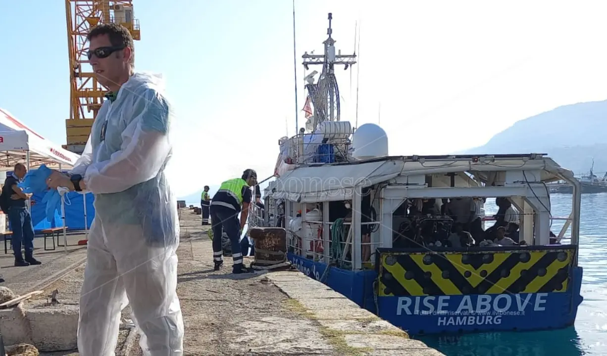 Sono iniziate poco dopo le ore 8.00 le operazioni di sbarco dei migranti al porto di Vibo Marina. Il gruppo, composto da 77 persone, si trova a bordo della imbarcazione Ong Rise Above di Mission lifeline, battente bandiera tedesca. Ci sono anche dieci donne, tredici donne e due bambini. I migranti erano stati soccorsi in acque maltesi. Provengono in particolare dal Burkina Faso, Camerun, Sierra Leone, Guinea, Mali e Nigeria. La nave aveva messo in sicurezza un totale di sette imbarcazioni in un’operazione di oltre 13 ore e, in coordinamento con le autorità italiane, ha preso a bordo le persone di due imbarcazioni. Poco dopo la nave è entrata nella zona Sar al largo di Lampedusa. Quindi la decisione delle autorità italiane circa il “porto sicuro” individuato in quello di Vibo Marina ed ora le operazioni di sbarco.