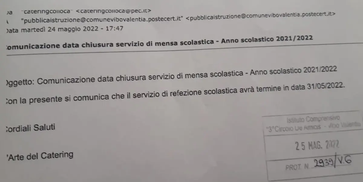 Ai genitori dei bimbi che frequentano la scuola dell’infanzia di Vibo Valentia, nella giornata di ieri, è stato comunicato che da oggi, 31 maggio, il servizio di refezione scolastica terminerà. A darne notizia è il coordinatore cittadino del Partito democratico Francesco Colelli, il quale sottolinea che le famiglia sono state, peraltro, informate di tutto ciò con un semplice «trafiletto whatsapp», dopo che la ditta incaricata del servizio mensa aveva, a sua volta, formalmente provveduto ad informare l’assessorato alla Pubblica istruzione di Palazzo Luigi Razza tramite Pec.