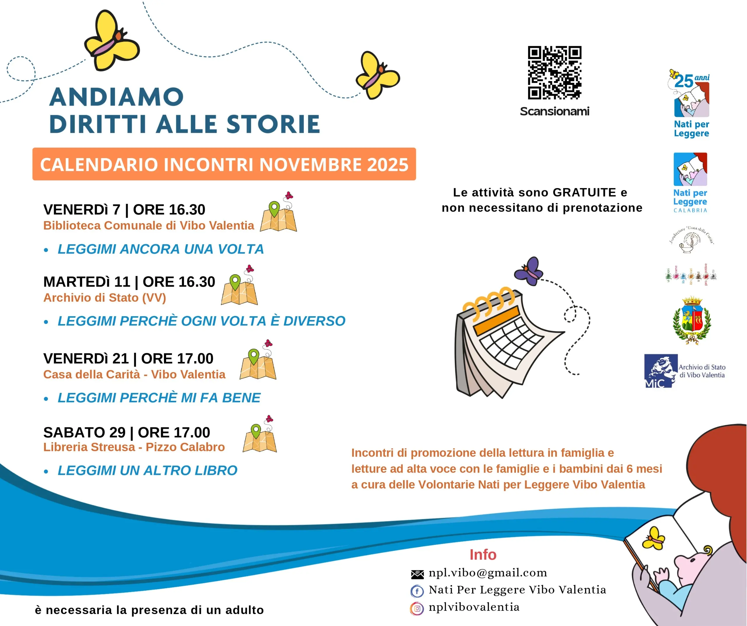- Venerdì 7 novembre, ore 16:30 – Biblioteca comunale di Vibo Valentia: “Leggimi ancora una volta”