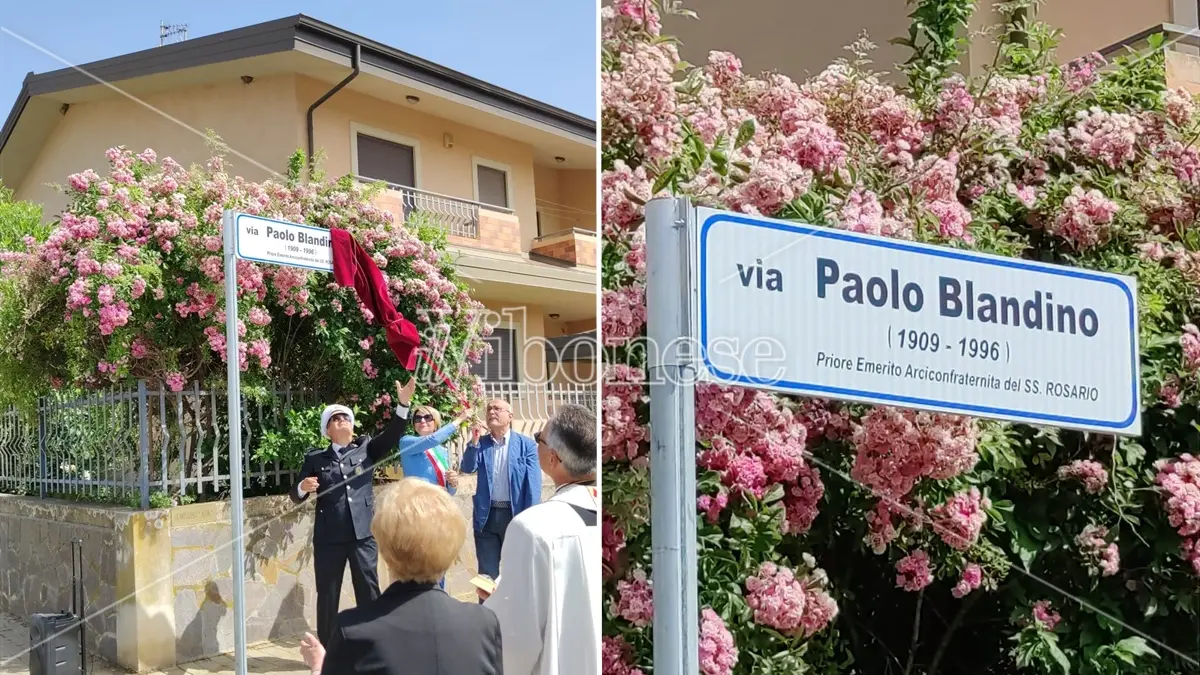 Da oggi una via di Vibo Valentia porterà il nome di Paolo Blandino, storico priore dell’Arciconfraternita del Rosario nonché stimato politico locale, che per lunghi anni è stato anche consigliere e assessore comunale. Questa mattina, nei pressi del Parco urbano di Moderata Durant, è stata benedetta e inaugurata la targa a lui dedicata. Alla cerimonia hanno partecipato i familiari di Blandino, tra i quali il figlio Raffaele – storico sindacalista della Cisl – che ha ringraziato brevemente i presenti, così come avrebbe fatto il padre che – ha ricordato – «era l’uomo del silenzio, diceva le cose essenziali». [Continua in basso]