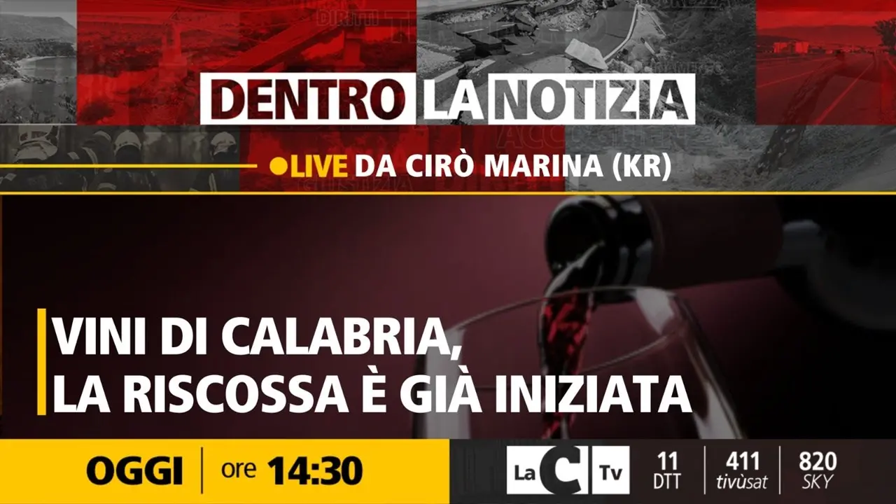 Da radici secolari a una realtà produttiva fiorente, la passione calabrese per la coltivazione della vite è un patrimonio che si rinnova ogni giorno. Oggi con Dentro La Notizia esploreremo questa tradizione, trasformata in una realtà produttiva di eccellenza. In studio Pier Paolo Cambareri, che avrà ospite Massimo Tigani Sava, direttore Sviluppo Identità Territoriale del Gruppo LaC. Inviato da Cirò Marina Salvatore Bruno che ci farà ascoltare la voce di Raffaele Librandi del Consorzio tutela vini Cirò e Melissa. Nel corso della puntata poi, anche l’intervista a un agronomo esperto che ci parlerà delle caratteristiche dei vini locali. Appuntamento dunque alle ore 14:30 su LaC Tv.