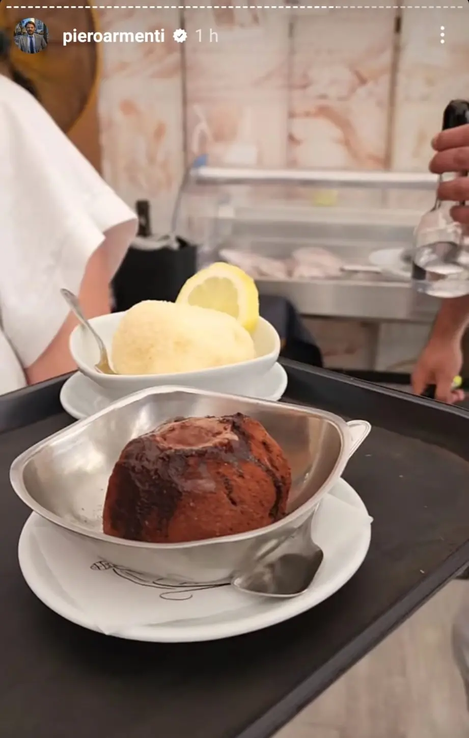 Dopo la tarantella “ballata” in macchina con i nipotini, l’arrivo a Pizzo. «Wow, che spettacolo», è stato il commento di Armenti dall’affaccio della piazzetta, «voglio andare al mare». Poi quello che gli riesce meglio. Seduto al tavolo di un noto ristorante della cittadina della costa degli Dei, prende il suo smartphone in mano e inizia a commentare menù, prezzi e piatti, concedendosi qualche battuta e risata con proprietario del locale e camerieri.