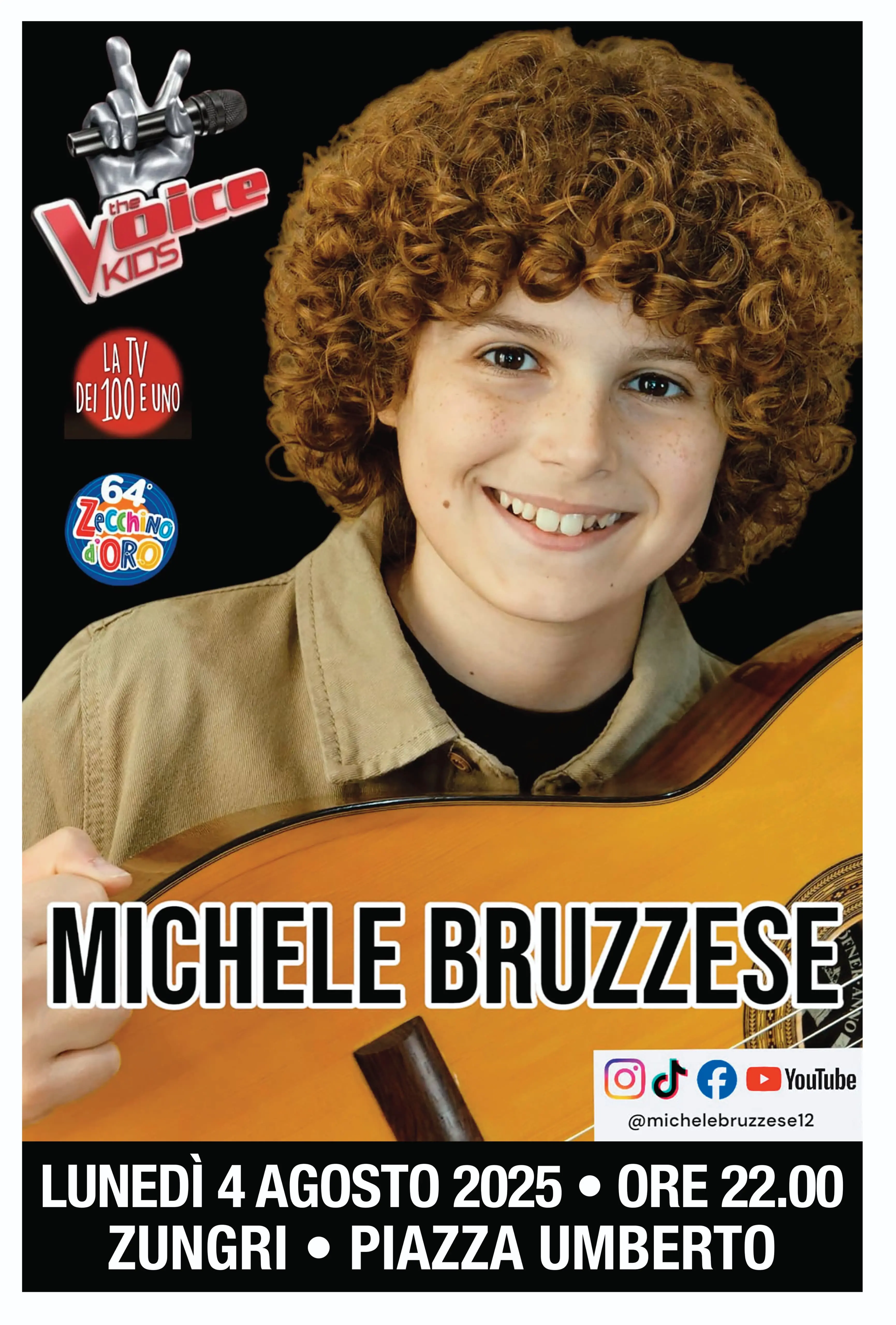 Ad agosto 2023, ha pubblicato il suo primo inedito, “Come un aeroplano”, con musica di Riccardo Lasero, Ivan Nasini e Samanta Olivieri. Sempre nel 2023, Michele ha partecipato a “The Voice Kids“, incantando i giudici con la sua interpretazione di “Pensieri e parole” di Lucio Battisti, aggiudicandosi la semifinale nella squadra di Arisa e meritandosi il soprannome di “piccolo Lucio“. Il suo percorso artistico è proseguito con successo nel 2024, prendendo parte al 15° Memorial Mino Reitano a gennaio. A giugno dello stesso anno, è stato sul set del film comico “Un sindaco fuori dal comune” di Fabio Mancuso, interpretando piccole scene e recitando al fianco del nipote del sindaco. La sua terra, la Calabria, gli ha tributato numerosi riconoscimenti per il suo talento e per la sua capacità di rappresentare al meglio la regione. Ha avuto l’opportunità di aprire concerti di artisti di calibro come Albano, LDA, Michele Zarrillo, Nomadi, Riccardo Fogli ed Enrico Ruggeri. Infine, ha cantato all’evento Calabria Evolution, accompagnato da ben 170 musicisti. Dopo aver ritirato il Premio Mariano, Michele Bruzzese avrà l’onore di aprire il concerto dei Gemelli Diversi, che si esibiranno sempre il 4 agosto a Zungri, promettendo una serata all’insegna della grande musica e del talento emergente.