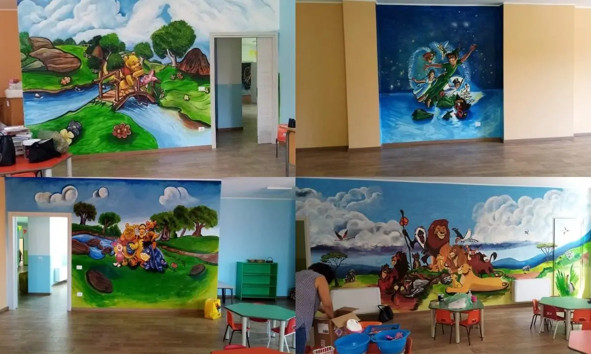 Il lavoro ha visto impegnato per più settimane il maestro Di Mari che ha prestato la sua arte praticamente a costo zero. Il Comune ha provveduto ad un rimborso spese (circa 300 euro per l’acquisto di colori e materiale vario), la mano dell’artista 36enne ha poi fatto il resto: «Si tratta di murales tutti a tema Disney dipinti sulle pareti di quattro stanze più un corridoio dove era già esistente un dipinto che ho provveduto a restaurare», ha tenuto a precisare il professionista.