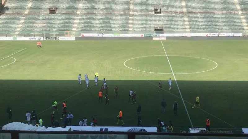 Due brividi. Uno per parte. Zero gol. I primi 45’ della finalissima tra Vibonese e Troina, che mette in palio il pass d’accesso alla prossima Serie C, si chiudono sul pareggio. Il primo squillo lo suonano i siciliani all’11’: Vazquez approfitta di un buco difensivo e di prima intenzione chiama agli straordinari Mengoni. La risposta della Vibonese al 17’ con il coast to coast di Ciotti per Bubas. Ma nel tiro del bomber rossoblù c’è solo la potenza ed il Troina si salva. Dopo la pausa. Si riprenderà dallo 0-0. La gara è ancora lunga.
