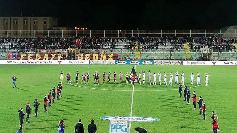 La cronaca. Parte con il piede sull’acceleratore la Casertana che dopo aver saggiato i riflessi di Mengoni con Floro Flores e D’Angelo passa in vantaggio con l’ex attaccante di Genoa, Sassuolo e Chievo. Il bomber rossoblù sguscia via alla difesa calabrese e infila Mengoni in velocità. La risposta della Vibonese però c’è ed è veemente. Russo deve fare gli straordinari su Tito al 13’. Sulla ribattuta Bubas spara alto. Poco dopo altra chance per il centravanti argentino ma la mira è ancora sballata. Ci riprova Tito al 19’: Russo è attento e blocca. Poi ritorna la Casertana. Quando riparte la formazione di Fontana fa paura. Al 22’ stop di petto e tiro al volo di Castaldo che Mengoni devia in corner. Poi più nulla. Ma la Vibonese è in partita. E ad inizio ripresa arriva la conferma. Pronti via ed un batti e ribatti in area favorisce Prezioso che con un rasoterra beffa Russo non proprio impeccabile nell’occasione. Al “Pinto” esultano i 13 supporters rossoblù che hanno seguito i loro beniamini in trasferta. Esulta il patron Caffo in panchina, profetico poco prima nell’intervallo ai microfoni di Rai Sport. “Segniamo” aveva detto il re dei liquori in attesa della ripresa. Detto. Fatto. Ma la gara è di quelle “toste”. La Casertana non vuole e non può accontentarsi di un altro pareggio. Macina gioco. Fa correre da una parte all’altra i rossoblù di Vibo. Esce Floro Flores. Entra Alfageme. Il neo entrato dà brio alla manovra offensiva campana. Orlandi richiama Taurino e getta nella mischia Ciotti. La Vibonese cambia pelle, si difende, ma non rinuncia ad attaccare. La Casertana non molla. Spinta dai 2000 tra tribuna e gradinata cerca il nuovo vantaggio. Lo sfiora di un soffio Alfageme al 70’. Fa venire i brividi, dall’altra parte del campo, anche Bubas con un pallone che saltella davanti alla porta. Il resto è girandola di sostituzioni e forcing finale dei locali. Al triplice fischio è 1-1. E Fontana, ex Cosenza, è sempre più in bilico. Fischi per i locali. Applausi per la Vibonese che conferma la regola del “Pinto”. Da queste parti non si perde mai.