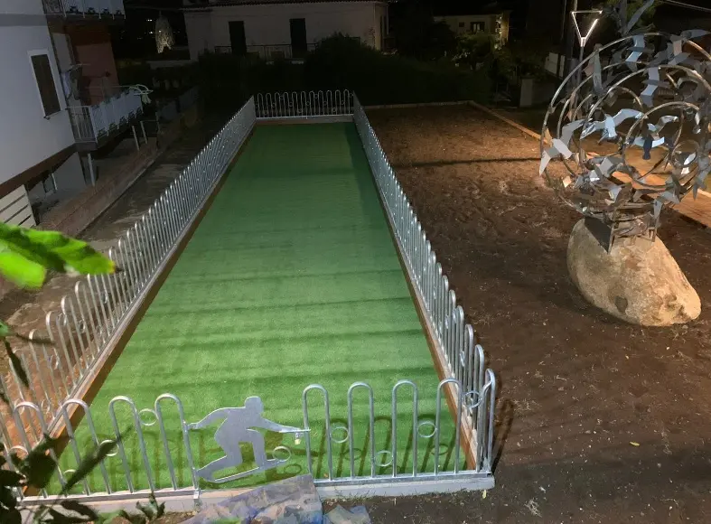 Un percorso assai articolato sbloccatosi dopo anni: «Nello stato di generale degrado della Piazza, anche i campi da bocce subirono analoga sorte. Da qualche anno – fa presente il primo cittadino – l’area è stata oggetto di un importante restauro che non ha tradito l’idea organica originaria e non ha introdotto elementi architettonici di novità. Si è pensato, invece, a una ricostruzione degli elementi che non è stato possibile recuperare. Ad arricchire questo importante spazio pubblico un campo di calcetto da poco integralmente restaurato che, nel tempo, aveva sostituito l’originario campo da tennis. Adesso è toccato al campo da bocce». Sul progetto area bocce, sono state fatte variazioni: «Anziché due campi, si è optato per un solo campo, ma realizzato in modo completo. Erbetta sintetica, paracolpi in legno e recinzione artistica in ferro zincato gli elementi di cui si compone la nuova opera. Intorno, sarà realizzato un prato verde. Di fronte al campo da bocce, la statua “Il canto del pettirosso” dedicata ai caduti sul lavoro del Comune di Zambrone».