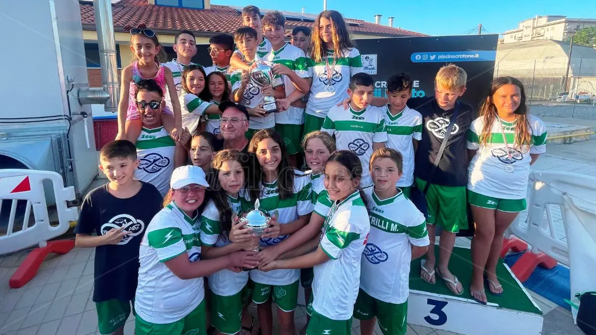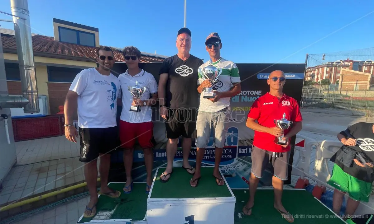 Ragazzi e ragazze dell’Asd Penta Vibo in grande evidenza anche a Crotone, allora, dove tutti assieme hanno dato il proprio contributo per far sì che la squadra vincesse il titolo e conseguisse anche un ottimo piazzamento. I risultati di squadra hanno portato la società A.S.D. Penta Vibo a classificarsi sul gradino più alto del podio con punti 194,50 per la categoria esordienti A e meritatissimo secondo posto con punti 146 per gli esordienti B. Ottimi piazzamenti individuali per Miriam Artusa: 1°posto 200 Dorso (3:11:20), 1° Posto 100 Farfalla (1:29:50), 1° posto 200 Misti (3:11:20), 1° posto 400 stile libero (5:52:20), 1° posto 200 stile libero (2:49:90). Ed ancora: Maria Fusca 1° posto 100 Farfalla (1:20:10) 2°posto 200 Farfalla (3:09:70), 2°posto 100 Sl (1:11:80), 3° posto 400 misti (6:24:40). Bene anche Andrea Pio Mazzitelli 2° posto 100 rana (1:24:50), 2° posto 200 Mix (2:39:40), 2° posto 200 farfalla (2:48:60), 2° posto 200 rana (3:00:70), 3° posto 100 farfalla (1:14:30) e Gabriele Patania 1° posto 100 dorso (1:16:80), 2° posto 400 misti (5:53:10), 3° posto 100 stile libero (1:03:90), 3°posto 200 dorso (2:45:90).