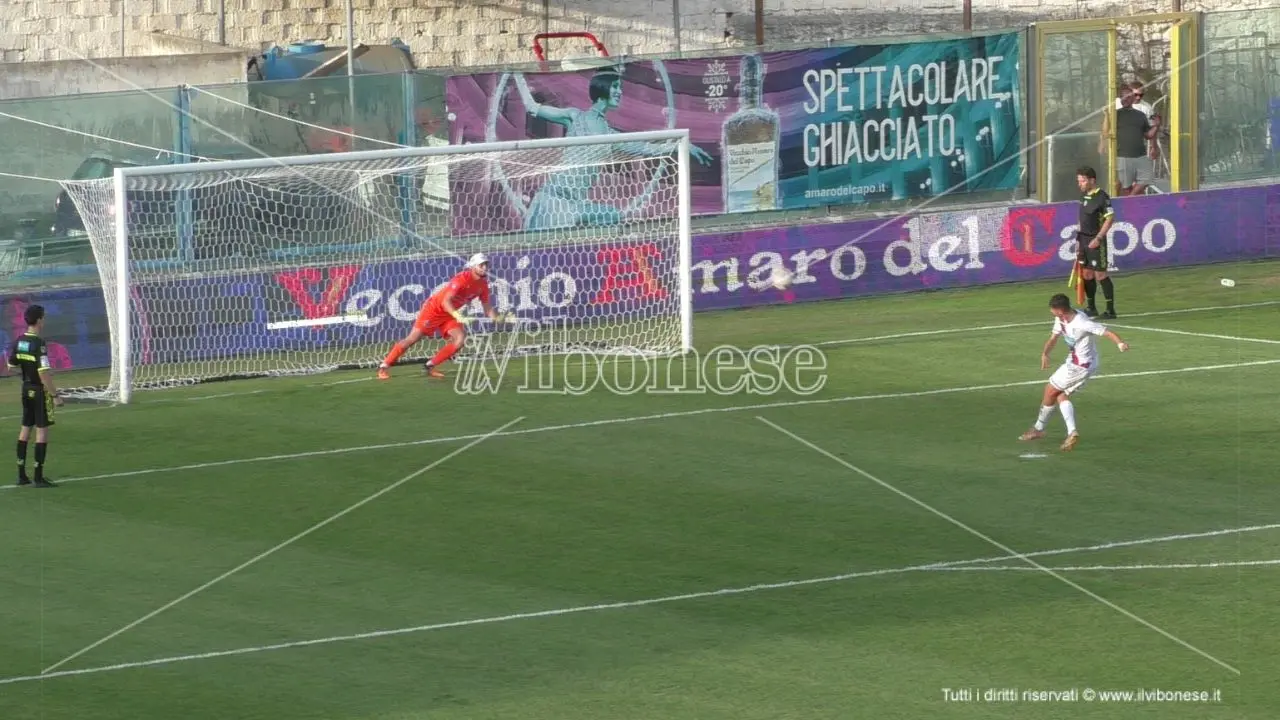 Si è fermata ai trentaduesimi di finale la corsa della Vibonese nella Coppa Italia di Serie D. Il Lamezia Terme si è imposto con il risultato di 6-5 ai calci di rigore. Nei tempi regolamentari risultato di 1-1 con gol di Furina per i rossoblù e Chironi per gli ospiti. Alla lotteria dei rigori, Vibonese precisa fino al quarto tiro, poi tre errori dal dischetto e qualificazione dei gialloblù. Nel video riviviamo le emozioni della partita.
