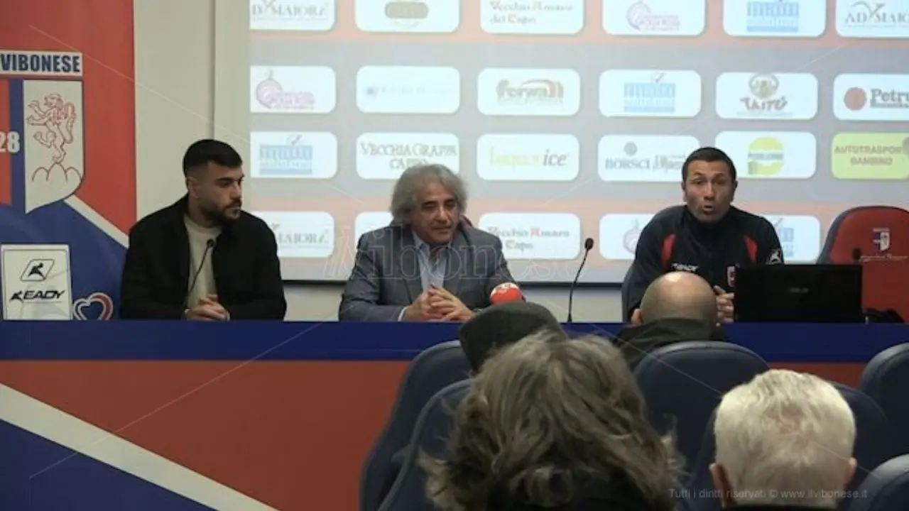 Conferenza di fine anno dell’Us Vibonese nella sala stampa dello stadio “Luigi Razza” per la squadra che milita nel girone I del campionato di Serie D. Al giro di boa i rossoblù hanno 40 punti in classifica grazie alle 12 vittorie, ai 4 pareggi e avendo perso solo una volta contro la capolista Trapani. Il direttore generale Antonello Gagliardi, durante l’incontro, si è detto soddisfatto del lavoro svolto finora, togliendosi anche qualche “sassolino” dalla scarpa. «Sono soddisfattissimo soprattutto perché ci osservano sia in Serie D che in categorie superiori e ci viene riconosciuto un bel gioco che in questa categoria si vede poco. Giochiamo a calcio – ha affermato Gagliardi – non a calci come qualche altra squadra». Nuovi assetti in campo a seguito delle uscite e delle entrate, l’ultima presentata proprio questa mattina: Ciro Favetta, il nuovo attaccante che indosserà la maglia numero 10. «Per noi il mercato può dirsi chiuso – ha continuato il direttore generale della squadra –. Abbiamo rafforzato tutti i reparti, quindi i veri tifosi vibonesi avranno da divertirsi per tutto il 2024. Daremo la caccia al Siracusa e al Trapani (le due squadre che precedono la Vibonese in classifica ndr), non ammainiamo la bandiera». Presente in conferenza stampa mister Antonio Buscé che torna a parlare dopo quattro giornate di squalifica: «Non credo di scombussolare più di tanto anche perché questa squadra ha un’identità ben precisa, ben definita. È normale mettere i nuovi arrivati in condizione di giocare nel miglior modo possibile, di sfruttare bene le loro caratteristiche. Credo che questa squadra finora ha dimostrato tanto, indipendentemente da qualche modulo diverso, che magari si può adottare in futuro. Una squadra con una mentalità chiara, quella di fare la partita e tutte le volte che scendiamo in campo lo facciamo per vincere».