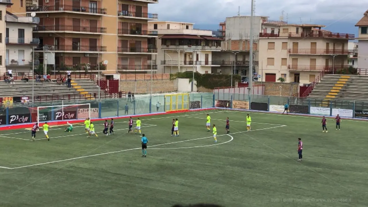Prima frazione intensa, con capovolgimenti e accorgimenti tali da rendere sempre l’idea del possibile arrivo del gol. Dopo un quarto d’ora di contese, nell’area locrese arriva un suggerimento che la Vibonese non riesce a insaccare. La palla schizza fuori dai pali, c’è lo zampino di Donini.