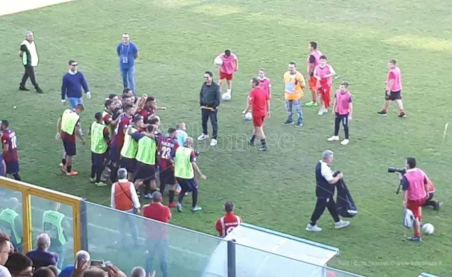 Il secondo tempo. In avvio di ripresa, mister Camplone inserisce Curiale per Rossetti: è l’unica variazione rispetto all’undici iniziale. Dopo cinque minuti è una punizione di Mazzarani ad impegnare Mengoni, ordinaria amministrazione. È invece la Vibonese a chiudere il conto siglando il 3-0: al 51′, Prezioso ruba palla a centrocampo e innesca Bernardotto che gonfia la rete con un diagonale perfetto, doppietta personale e prestazione da incorniciare. Minuto 52, di nuovo Prezioso incontenibile, entra in area e viene atterrato da Silvestri, calcio di rigore: dal dischetto Bubas marca il poker piegando le mani di Furlan. Troppo anche per i tifosi del Catania, che al minuto 63′ decidono così di lasciare anzitempo la gradinata, tra gli applausi – in segno di rispetto – degli ultras di casa. Per gli ospiti piove sul bagnato: al 65′ espulso Dall’Oglio per doppia ammonizione. Al 66′ Berardi, servito da Bubas, manca il pokerissimo sparando in curva ad un metro dalla porta. Al 69′ è ancora Bernardotto a seminare il panico nell’area ospite. Minuto 71 e Berardi impegna con una nuova sassata Furlan. Al 75′ la girandola dei cambi dá fiato a Tumbarello e Bernardotto, che esce nell’ovazione del pubblico con la palma di migliore in campo. La girandola dei cambi continua con ulteriori innesti. Allo scadere è Allegretti a siglare il 5-0 con una sassata che fulmina Furlan. Finisce così: 5-0 per la Vibonese a cui, paradossalmente, il risultato sta pure stretto alla luce della lezione inferta al Catania.