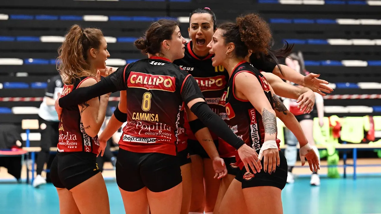Il muro finale di Macedo fa esplodere di gioia e commozione i cuori giallorossi presenti sulle tribune del palasport di Fasano, ma anche i tanti alla visione della diretta streaming. Una bella vittoria per le ragazze di coach Boschini quella contro la Panbiscò Altamura, che fa conquistare alla Tonno Callipo la finale della Coppa Italia di Serie B2 femminile.