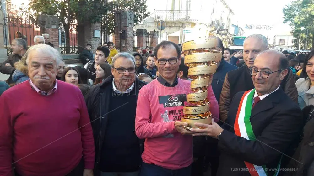 Da Milano a Mileto e, quindi, il ritorno direttamente nella città meneghina per essere esposto al pubblico, insieme al trofeo della prossima Coppa del mondo di sci. Questo il percorso futuro del “Trofeo infinito” destinato al vincitore dell’edizione 2020 del Giro d’Italia. Il prezioso cimelio è giunto nella cittadina normanna nella mattinata di oggi, con destinazione finale il locale Museo statale. Qui potrà essere ammirato gratuitamente fino al prossimo 30 dicembre. Il suo arrivo rappresenta l’ennesimo grande risultato conseguito dal patron di mille corse, nonché ex presidente della Federazione ciclistica regionale, Mimmo Bulzomì, ciliegina sulla torta di un sogno concretizzatosi con l’inserimento di Mileto come luogo di partenza della tappa del 15 maggio della prossima Corsa rosa, con destinazione finale Camigliatello Silano. Il protocollo della giornata ha previsto la consegna a Palazzo dei Normanni – da parte del sindaco Fortunato Giordano – del “Trofeo infinito” al commissario tecnico della Nazionale ciclistica italiana Davide Cassani. Il Ct azzurro si è subito dopo diretto in corteo alla volta della basilica cattedrale, attorniato da decine di piccoli ciclisti delle scuole elementari. Qui ad attenderlo c’è stato il vescovo della diocesi di Mileto-Nicotera-Tropea monsignor Luigi Renzo, il quale, ricevuto il trofeo, ha attraversato il cortile dell’Episcopio e lo ha consegnato ufficialmente sul portone d’ingresso al direttore del Polo museale della Calabria Antonella Cucciniello, a cui la struttura culturale guidata da Faustino Nigrelli è afferente. Il famoso cimelio a vortice è stato subito dopo posizionato all’interno delle sale espositive, nella bacheca destinata ad ospitarlo sino alla fine di questo mese, in modo da essere ammirato da tutti i suoi estimatori insieme alle altre preziose opere marmoree, argentee e pittoriche presenti in pianta stabile. Alla “festa” miletese di avvicinamento all’appuntamento principale del prossimo 15 maggio hanno partecipato le massime autorità civili, politiche e militari del territorio. Tra questi, il presidente della Provincia Salvatore Solano. Al termine della manifestazione nell’adiacente Sala delle Laudi si è svolta una cerimonia, nel corso della quale sono stati premiati dall’apposito comitato organizzatore – con l’opera appositamente realizzata dal maestro Antonio La Gamba – diversi esponenti del mondo della stampa, del settore imprenditoriale e dello sport e volti storici del locale “Sporting Club” come Ciccio Gulotta e Elio Carolei.