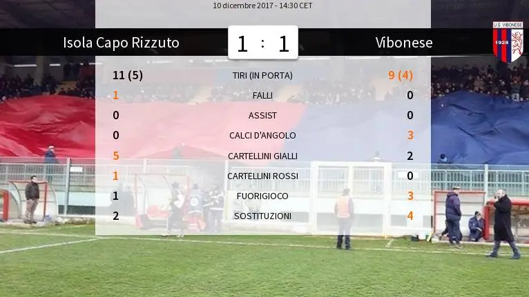Nel secondo tempo esce il carattere della Vibonese che prova a farsi vedere nell’area avversaria. Pullano respinge un tiro di Allegretti negando il gol del raddoppio. In tutto ciò i rossoblù si vedono annullare due reti per fuorigioco e vanno in superiorità numerica dopo l’espulsione di Sangare (per doppia ammonizione) tra le fila di casa.