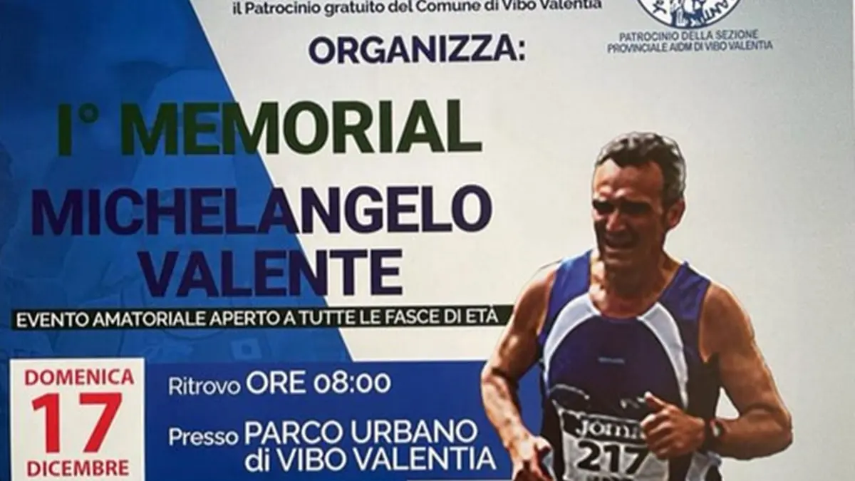 Si svolgerà domenica 17 dicembre al Parco Urbano di Vibo Valentia il primo memorial dedicato a Michelangelo Valente, il vigile del fuoco prematuramente scomparso. Una corsa amatoriale a passo libero di circa 6 Km. Il ritrovo è alle ore 8,00 al Parco Urbano. L’evento amatoriale è aperto a tutte le fasce d’età. La giornata è organizzata dall’Asd Conoscere Jonadi con il comando dei vigili del fuoco di Vibo Valentia ed il patrocinio gratuito del Comune di Vibo Valentia. Al termine della gara si svolgeranno le esibizioni di vari gruppi sportivi.
