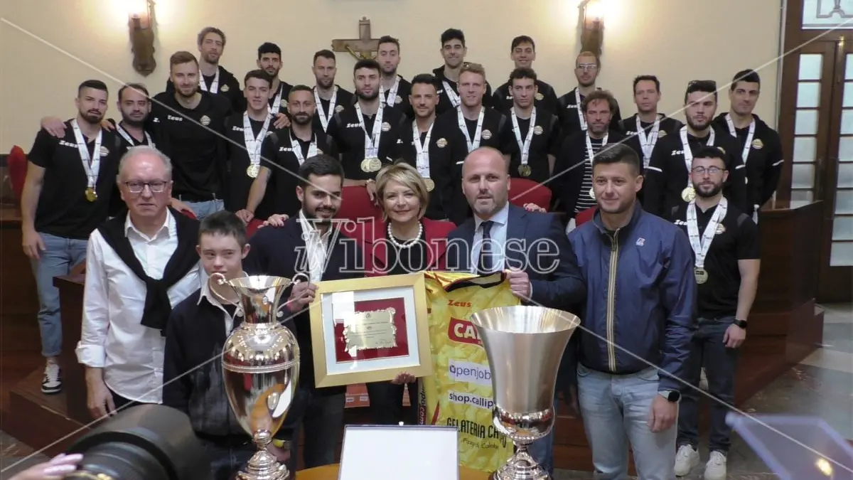 Nella stagione della ripartenza, dopo un’amara retrocessione, la Tonno Callipo ha conquistato uno straordinario triplete, primeggiando in tutte le manifestazioni alle quali ha partecipato. La promozione in Superlega, avvenuta domenica scorsa, ha rappresentato il sigillo finale su una annata nella quale è stata fin da subito evidente la superiorità della formazione giallorossa, in grado di riportare entusiasmo nella propria tifoseria. Dopo aver alzato al cielo la Coppa Italia, ripetendosi anche in Supercoppa, ecco il salto di categoria, con l’immediato ritorno in Superlega. Tonno Callipo da sempre orgoglio di Calabria e anche orgoglio della città di Vibo. In segno di riconoscimento per i brillanti risultati ottenuti, l’amministrazione comunale diretta dal sindaco Maria Limardo ha ricevuto squadra e staff tecnico nella sala consiliare per una cerimonia di premiazione. [Continua in basso]