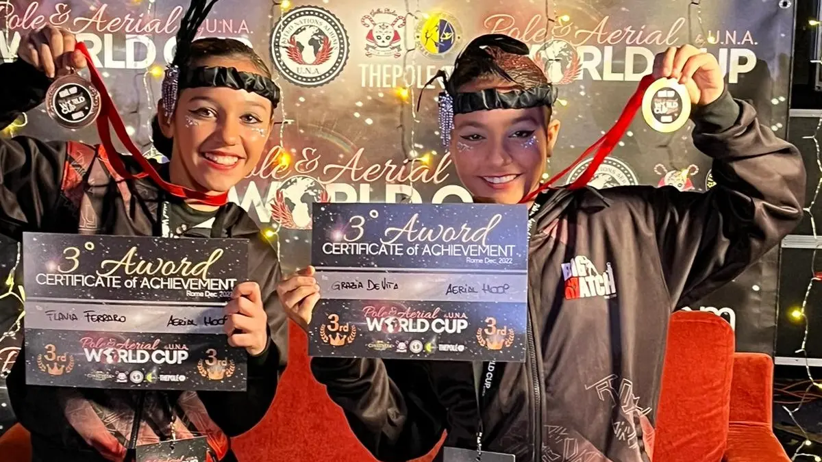 Nonostante abbiano dovuto misurarsi con avversarie anagraficamente più grandi di loro e, quindi, più fisicamente dotate sono riuscite ad agguantare un terzo posto che vale quanto una vittoria. Grazia De Vita e Flavia Ferraro, talentuose atlete della “Big Match the gym” di San Calogero, alla World’s cup – la rassegna di coppa del mondo di danza aerea in corso a Roma – non hanno deluso le aspettative della vigilia portando a casa un bronzo che vale oro.