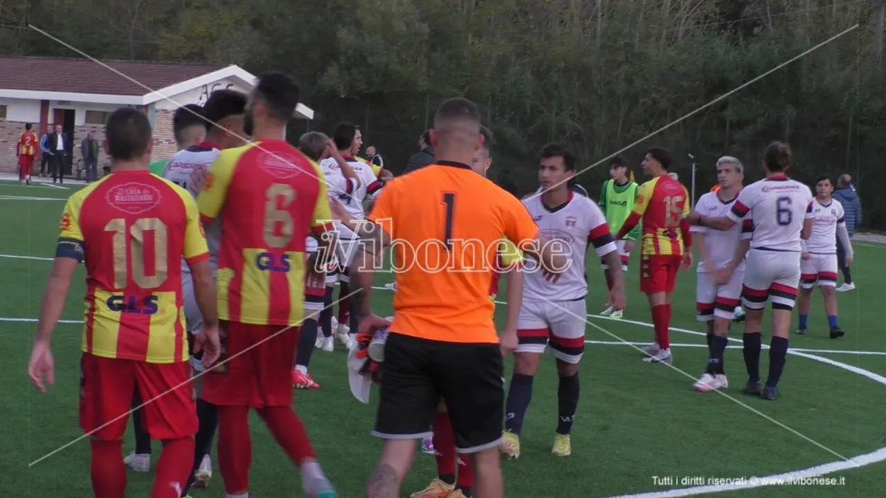 È finita a reti bianche. Nessun gol e giusto risultato di parità fra il Soriano e il Sambiase. Lo 0-0 conclusivo ci sta tutto, anche se resta un pizzico di rammarico per una grossa occasione avuta nella ripresa da Raso. Questi, però, sono episodi che, se vogliamo, lasciano il tempo che trovano. Gli spunti, veri, della giornata sono altri e riguardano quanto si è visto in campo, dal punto di vista prettamente calcistico, e ciò che ha anticipato e poi accompagnato l’evento, per quello che è stato un vero e proprio giorno di festa. In classifica, Sambiase sempre in vetta e Soriano sempre secondo, a meno due, lì a vivere il suo momento magico.