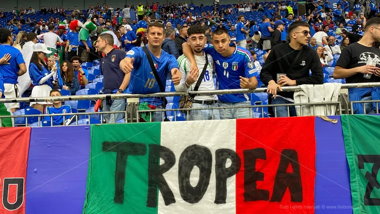 Tra i tifosi che colorano gli spalti in attesa di Italia-Spagna, spicca anche una bandiera dell’Italia con la scritta “Tropea”, portata da tre sostenitori che con orgoglio rappresentano la Calabria in questo Europeo e che si sono fatti immortalare dall’obiettivo di Pasquale Golia, uno dei fotografi calabresi presenti a Euro 2024 che nel corso di questi giorni sta contribuendo a documentare la competizione continentale attraverso le pagine del nostro network.