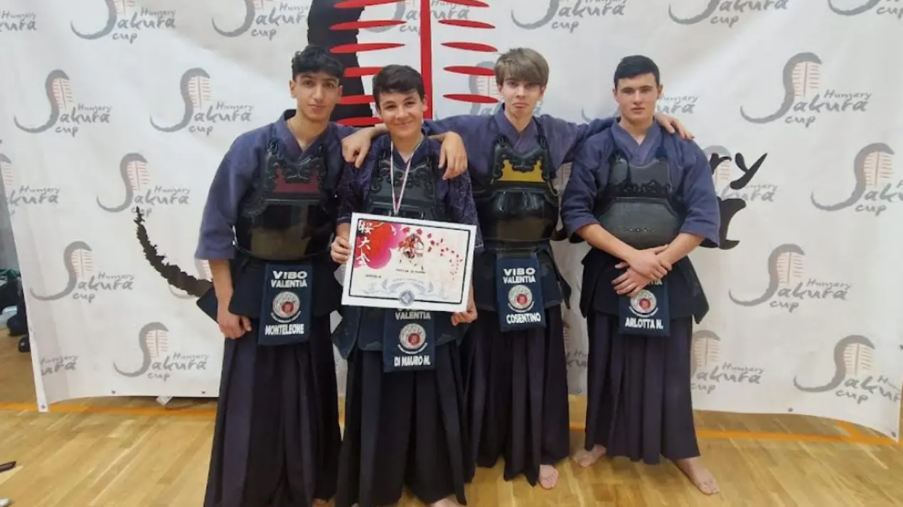 Nel fine settimana trascorso il Kendo della Scuola marziale vibonese è volato in Ungheria, a Budapest, per partecipare alla Sakura Cup, il torneo giovanile più importante d’Europa arrivato alla sua 30esima edizione. La formazione vibonese si è imposta nella categoria under 12 con un argento conquistato da Mattia Di Mauro. È stata una trasferta impegnativa, con la partecipazione di atleti fortissimi», afferma il maestro Roberto Bucca, poliziotto della Squadra Cinofili della città. «Siamo partiti da Vibo Valentia e ci siamo fatti valere in campo europeo confrontandoci con atleti provenienti da tutto il continente. Nella categoria under 15 Nicola Arlotta e Lorenzo Monteleone sono arrivati ai quarti di finale, uscendone con grande spirito combattivo, ma classificandosi tra i migliori sedici d’Europa a conferma dell’elevato valore tecnico della nostra Scuola. Un torneo così importante ha rappresentato una riconferma importante per i nostri giovani. Eravamo l’unico club italiano presente e raggiungere risultati così importanti è motivo di vanto sia per la nostra Scuola che per tutto il Kendo Italiano».