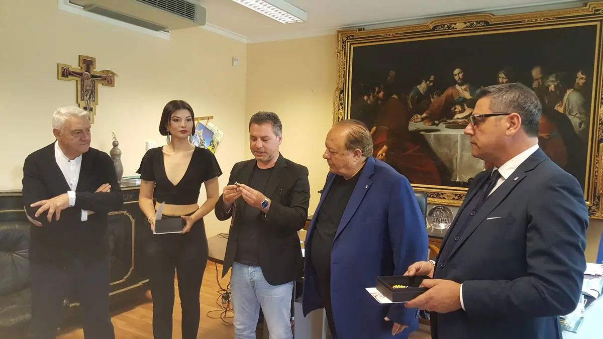 Tutto in un gioiello. Da Gerardo Sacco una medaglia commemorativa in argento per omaggiare l’impegno di tutti gli chef calabresi che hanno aderito all’iniziativa promossa dalla U.S. Vibonese Calcio: “La Solidarietà è Servita”. Una speciale moneta raffigurante su un lato l’Araba Fenice: uccello mitologico che risorge dalle proprie ceneri nell’atto di beccare un serpente, dall’atro il simbolo della manifestazione rappresentata dal fregio del club rossoblu. Il maestro Sacco ha inteso fermare nel tempo, questo evento storico, attraverso il suo estro artistico, esprimendo il senso profondo della manifestazione e del messaggio che essa vuole dare creando un oggetto che possa essere foriero di ciò che rappresenta. La fenice è il simbolo per antonomasia di rinascita portando con sé un messaggio di speranza per tutti: dalla bruttura della cenere possa rifulgere quel fuoco fatto di passioni e buoni sentimenti.