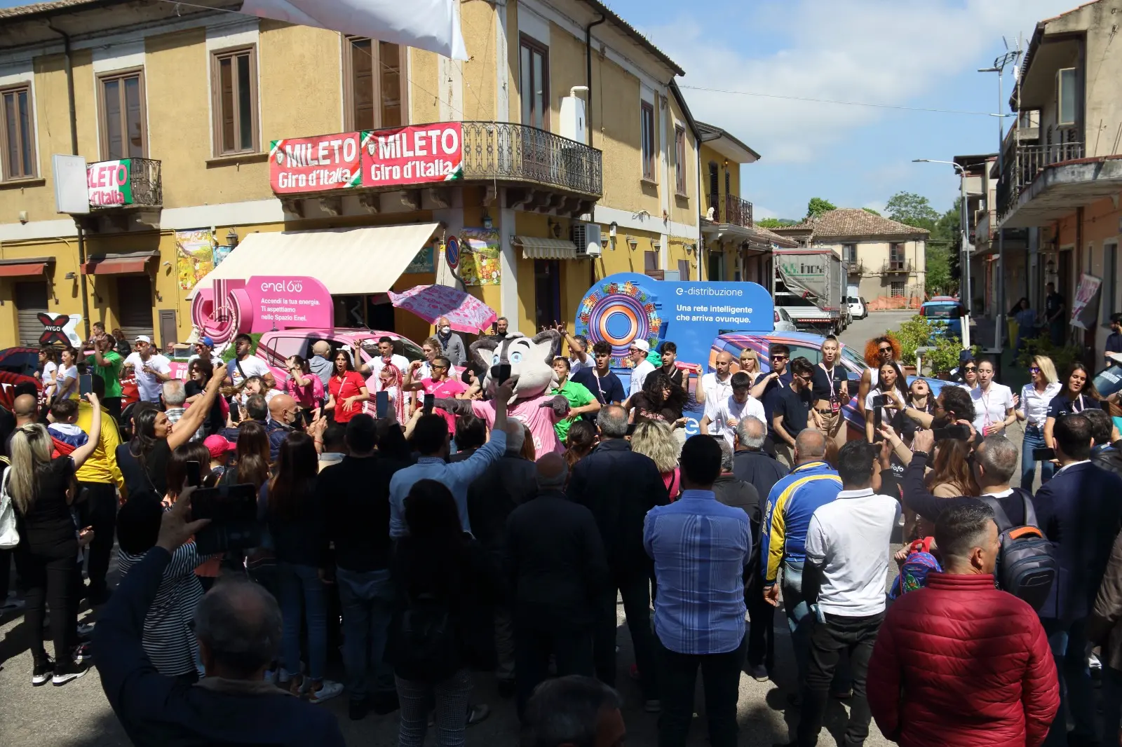 A Mileto festa grande, ieri, per il passaggio del Giro d’Italia. Nella cittadina normanna le “danze” sono iniziate in tarda mattinata, con la sosta della carovana pubblicitaria lungo Corso Umberto I. Alle 10.30 circa – nell’attesa del transito dei corridori in direzione Scalea – spazio agli spettacoli, alle attrazioni e ai gadget donati ad adulti e bambini dagli sponsor e dalle ditte abbinate alla 105esima edizione della Corsa Rosa. Nella Villa comunale, invece, si è svolta la breve cerimonia che, se mai ce ne fosse stato bisogno, ha sancito ancora di più il forte legame che da sempre intercorre tra lo Sporting Club del patron Mimmo Bulzomi, la stessa Mileto e lo storico evento sportivo.
