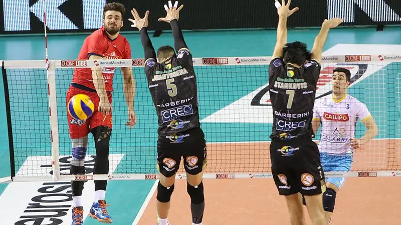 Prova a stare in partita la Tonno Callipo nel secondo set con l’ace di Barreto Silva che porta i suoi sotto 5-4, ma i padroni di casa trovano il break con il muro vincente su Michalovic (11-7). Thiago Alves mette palla a terra (17-12), prima che i marchigiani allunghino ancora sul 19-12 con Cester e Sokolov. Fa il suo ingresso in campo Ernesto Torchia in seconda linea, ma sulla falsa riga del primo set, la Tonno Callipo si spegne e dà il via libera a Stankovic e compagni che conquistano il set 25-15.