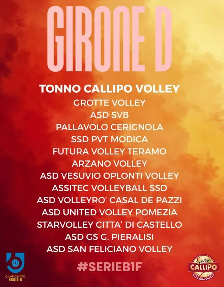 La Tonno Callipo di coach Saja è stata ovviamente inserita nel girone D, quello più meridionale ed è l’unica portacolori calabrese, al pari della Ssd Pvt Modica per la Sicilia; della Futura Volley Teramo per l’Abruzzo e l’Asd Pieralisi Pallavolo Jesi per le Marche. In testa ci sono, con tre squadre ciascuna, Lazio (con Assitec Volleyball Ssd Frosinone, Asd Volleyrò Casal de Pazzi Roma, Asd United Volley Pomezia) e Puglia (Grotte Volley Asd Castellana, Asd SVB Bisceglie, Pallavolo Cerignola). Con due la Campania (Arzano Volley e Asd Vesuvio Oplonti Torre Annunziata) e l’Umbria (Star Volley Città di Castello – che è anche la trasferta più lunga con ben 807 chilometri -, e Asd San Feliciano Magione-Perugia), per un totale di 14 squadre, dunque finalmente in numero pari.