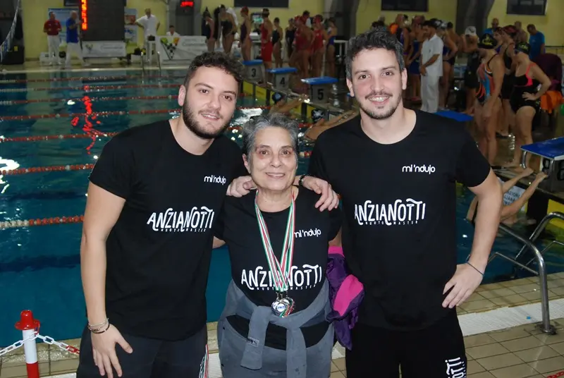 Soddisfazione ed entusiasmo tra gli esordienti dei pre-Anzianotti che hanno gareggiato per la prima volta in un circuito nazionale supermaster: Francesco Scola (M40), Mario D’orrico (M35), Giuseppe Rizzo (M40), Mazzuca Antonio (M60), Alessandro Valente (M40). Hanno conquistato la loro prima medaglia: Fortunato Calderone (M30) terzo classificato nei 50 rana, Mirko Renzelli (M25) terzo classificato nei 50 rana, Francesco Servidio (M25) terzo classificato 100 stile, Gianmarco Totera (M25) primo classificato nei 100 stile.