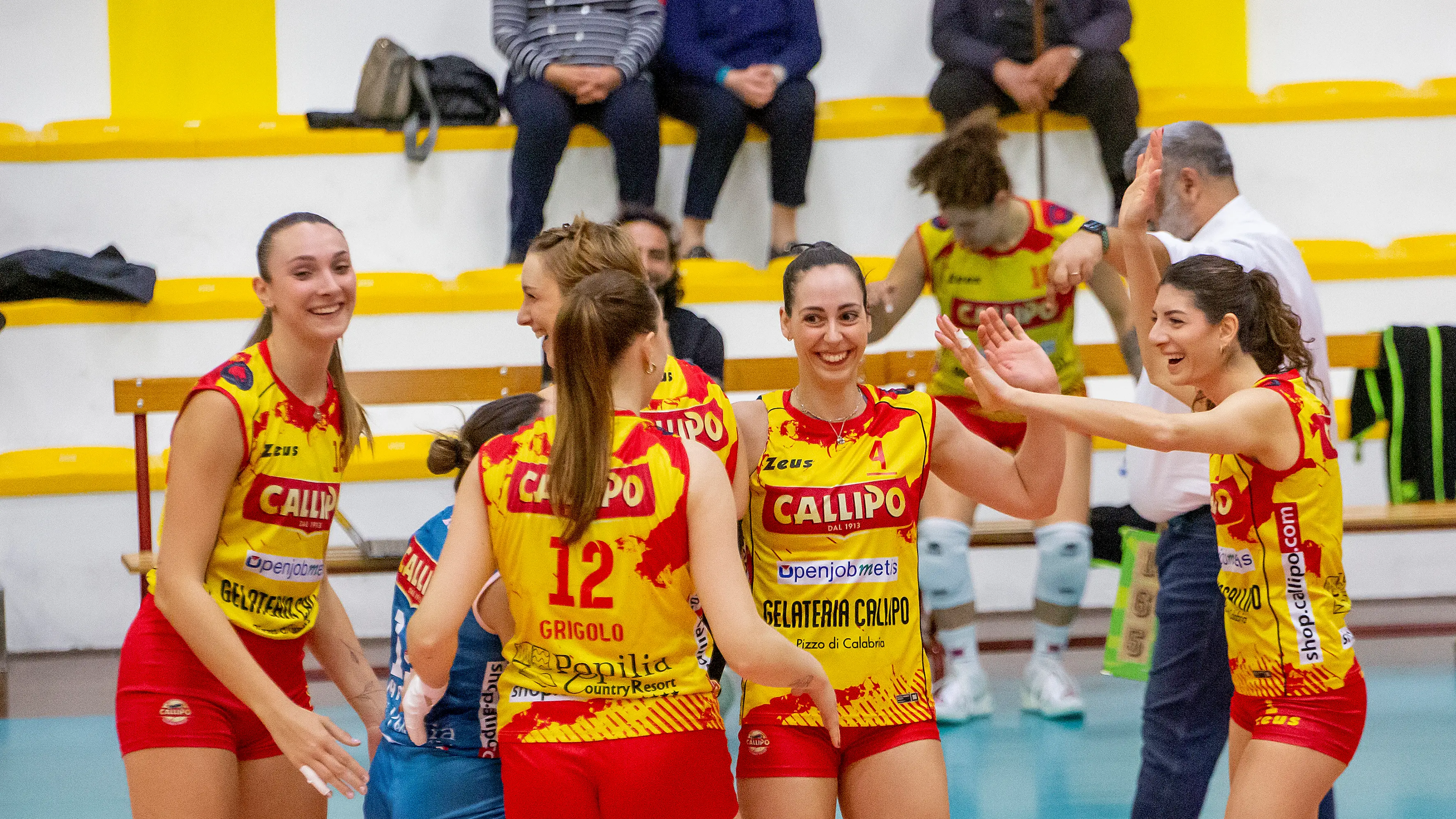 La risposta della Tonno Callipo arriva immediata. Nel quarto set le giallorosse passano dal 3-2 al 10-2 con un parziale di 7-0, favorito anche dalla serie al servizio di Grigolo. Modica prova a interrompere l’inerzia, ma Vibo torna a giocare con la stessa qualità dei primi due set: il muro diventa un riferimento, Scacchetti gestisce i tempi e gli attacchi di Rizzo, Grigolo, Civitico, Pomili e Botarelli riportano il controllo dalla parte vibonese.
